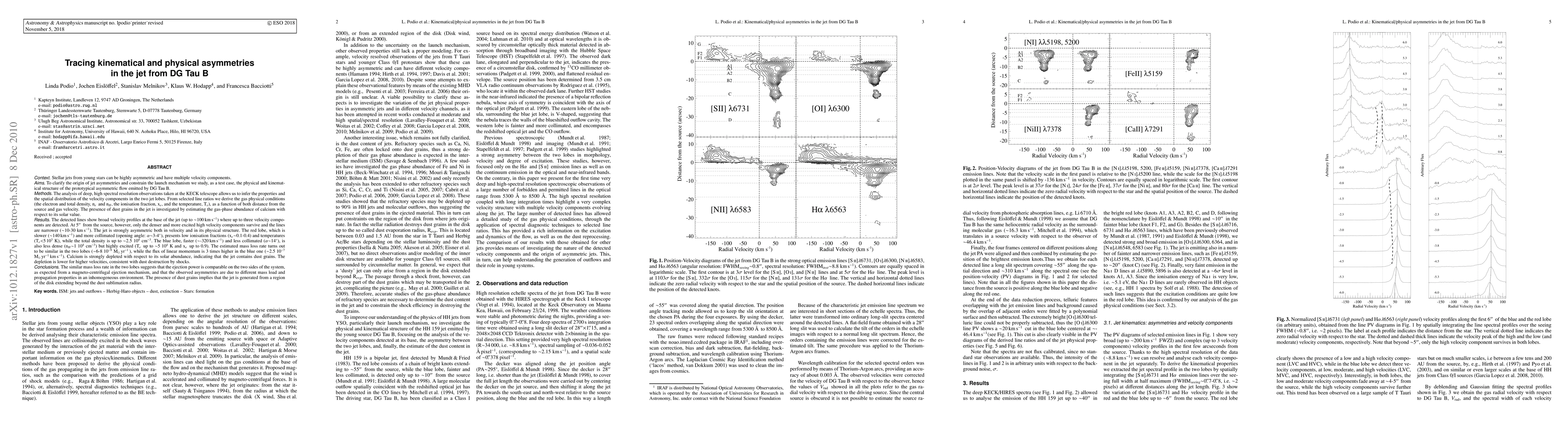 Researchers studied the jet from DG Tau B to understand its asymmetries and launch mechanism, finding that the red lobe is slower and more collimated with low ionization fractions, while the blue lobe is faster and less dense with high excitation.