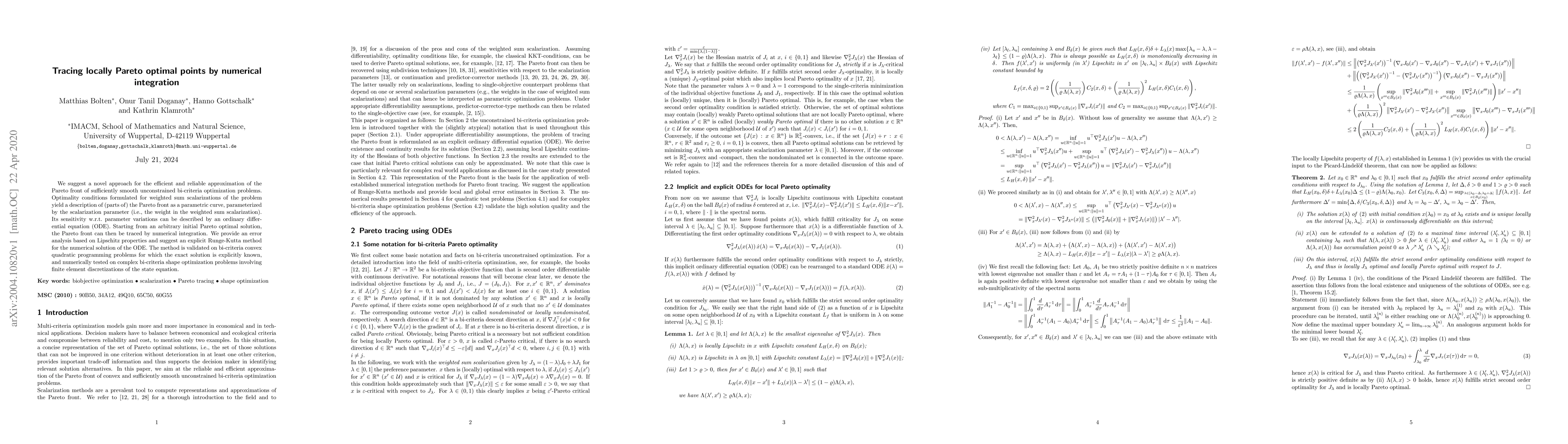 Researchers propose a method to efficiently approximate the Pareto front of bi-criteria optimization problems using numerical integration, enabling reliable tracing of locally optimal points.