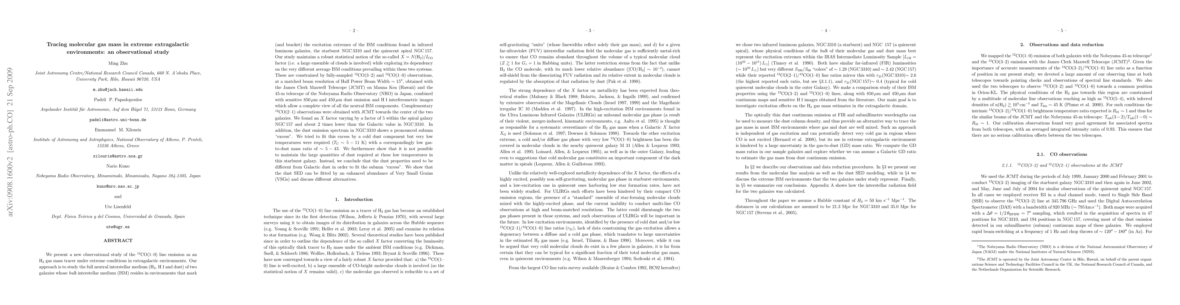 We present a new observational study of the CO(1-0) line emission as an H2 gas mass tracer under extreme conditions in extragalactic environments. Our approach is to study the full neutral interstellar medium (H2, HI and dust) of two galaxies whose bulk interstellar medium (ISM) resides in environments that mark (and bracket) the excitation extremes of the ISM conditions found in infrared luminous galaxies, the starburst NGC3310 and the quiescent spiral NGC157. Our study maintains a robust statistical notion of the so-called X factor (i.e. a large ensemble of clouds is involved) while exploring its dependency on the very different average ISM conditions prevailing within these two systems. These are constrained by fully-sampled CO(3-2) and CO(1-0) observations, at a matched beam resolution of Half Power Beam Width 15", obtained with the JCMT the Nobeyama 45-m telescope, combined with sensitive 850 and 450 micron dust emission and HI interferometric images which allow a complete view of all the neutral ISM components. We found an X factor varying by a factor of 5 within the spiral galaxy NGC157 and about 2 times lower than the Galactic value in NGC3310. In addition, the dust emission spectrum in NGC3310 shows a pronounced submm "excess". We explain and fit this by an enhanced abundance of Very Small Grains (VSGs). The alternative approach to interpret this excess as very cold dust would yield a cold dust temperature of 5-11 K with a correspondingly very low gas-to-dust mass ratio of 5-43, very unlikely for this starburst galaxy with low metallicity.