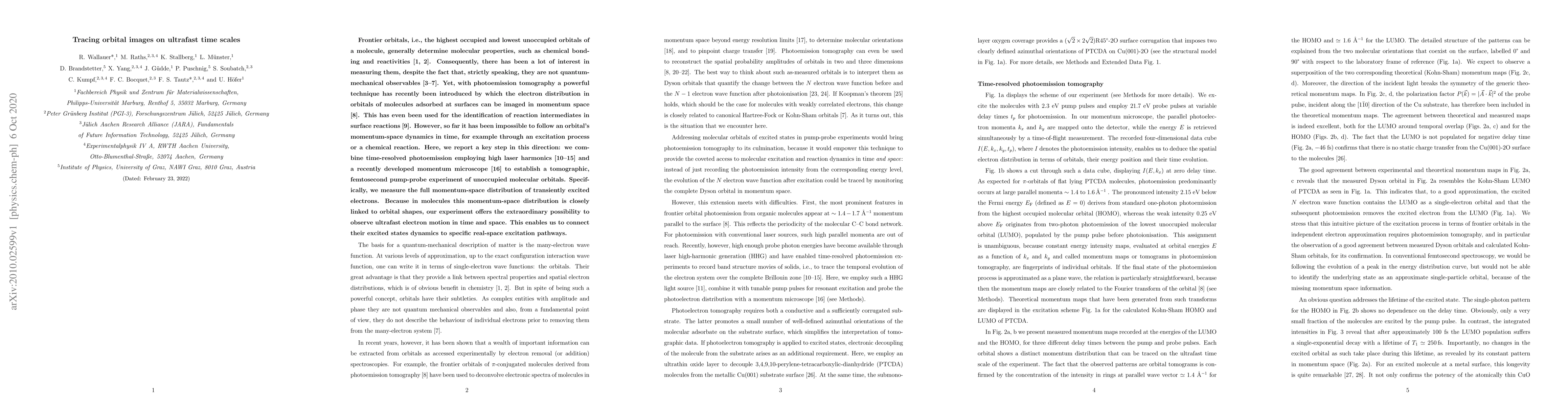 Frontier orbitals, i.e., the highest occupied and lowest unoccupied orbitals of a molecule, generally determine molecular properties, such as chemical bonding and reactivities. Consequently, there has been a lot of interest in measuring them, despite the fact that, strictly speaking, they are not quantum-mechanical observables. Yet, with photoemission tomography a powerful technique has recently been introduced by which the electron distribution in orbitals of molecules adsorbed at surfaces can be imaged in momentum space. This has even been used for the identification of reaction intermediates in surface reactions. However, so far it has been impossible to follow an orbital's momentum-space dynamics in time, for example through an excitation process or a chemical reaction. Here, we report a key step in this direction: we combine time-resolved photoemission employing high laser harmonics and a recently developed momentum microscope to establish a tomographic, femtosecond pump-probe experiment of unoccupied molecular orbitals. Specifically, we measure the full momentum-space distribution of transiently excited electrons. Because in molecules this momentum-space distribution is closely linked to orbital shapes, our experiment offers the extraordinary possibility to observe ultrafast electron motion in time and space. This enables us to connect their excited states dynamics to specific real-space excitation pathways.