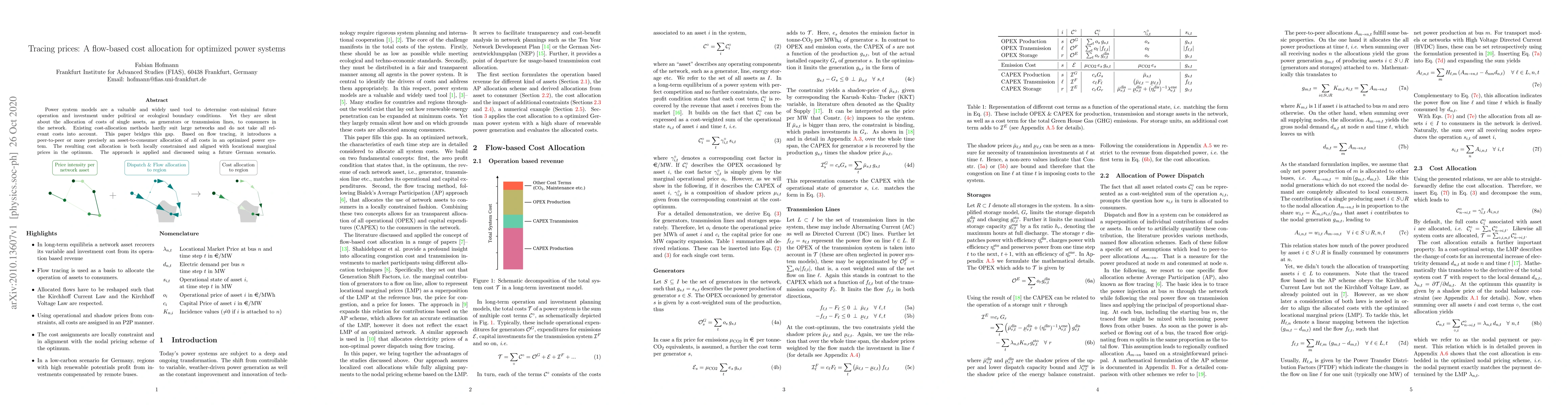 Power system models are a valuable and widely used tool to determine cost-minimal future operation and investment under political or ecological boundary conditions. Yet they are silent about the allocation of costs of single assets, as generators or transmission lines, to consumers in the network. Existing cost-allocation methods hardly suit large networks and do not take all relevant costs into account. This paper bridges this gap. Based on flow tracing, it introduces a peer-to-peer or more precisely an asset-to-consumer allocation of all costs in an optimized power system. The resulting cost allocation is both locally constrained and aligned with locational marginal prices in the optimum. The approach is applied and discussed using a future German scenario.