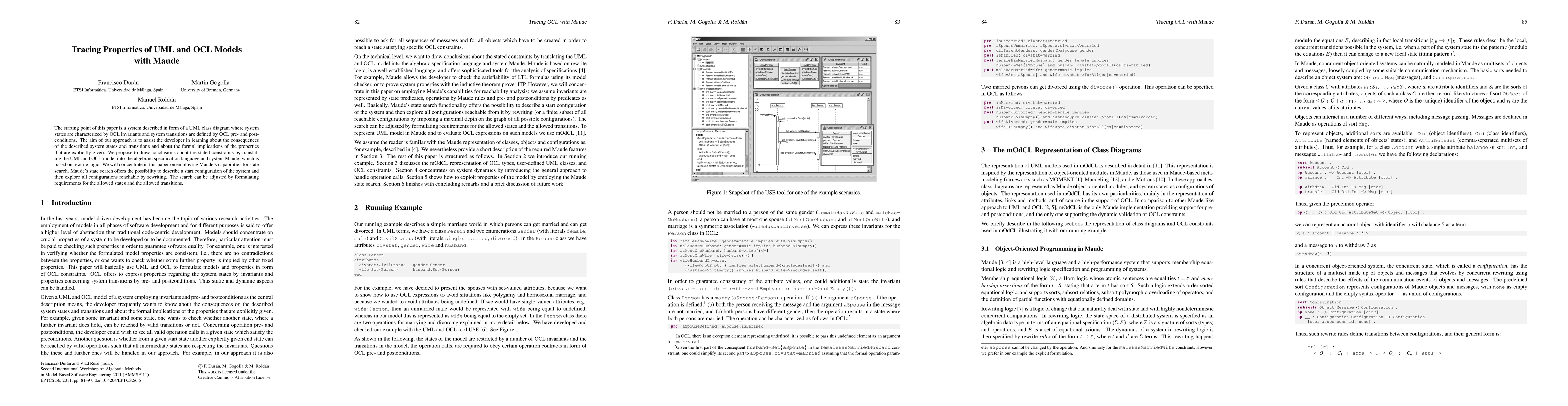 This paper proposes translating UML class diagrams and OCL invariants into Maude's rewrite logic to explore the formal implications and consequences of system states and transitions. It focuses on using Maude's state search capabilities to analyze reachable configurations and constraints.