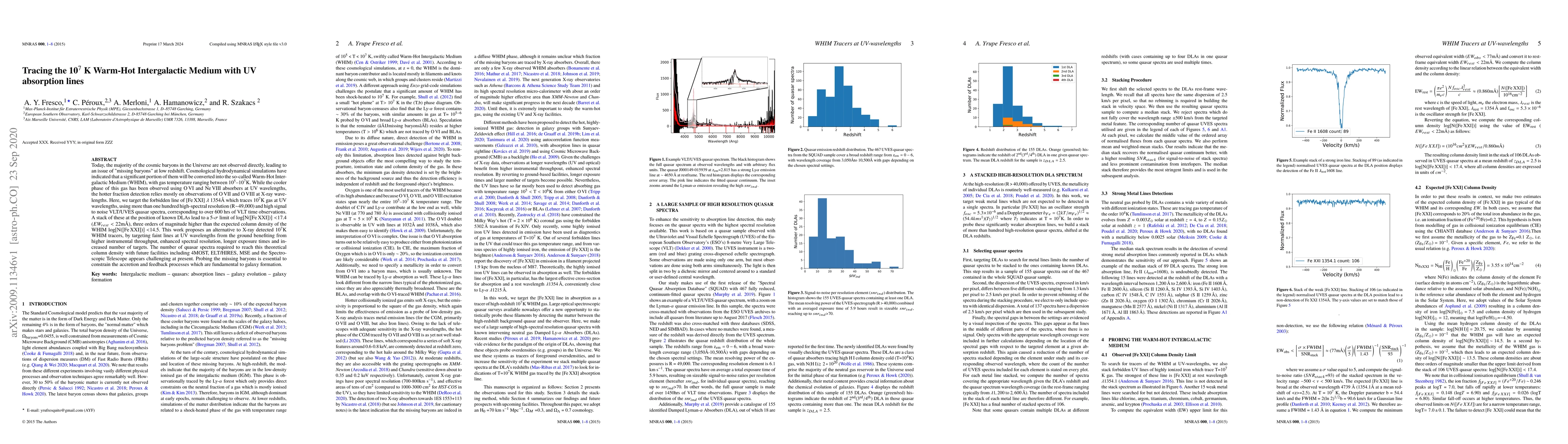 Researchers detect faint signs of 10^7K Warm-Hot Intergalactic Medium using UV absorption lines, proposing an alternative to X-ray tracers for probing missing cosmic baryons.