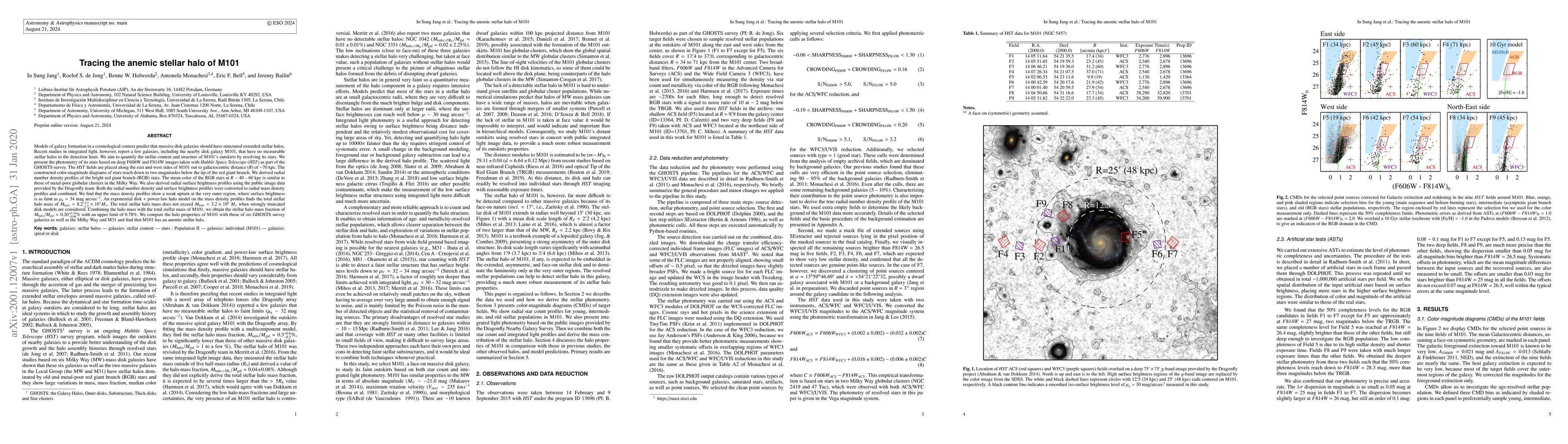 This paper investigates the stellar halo of M101 using Hubble Space Telescope data and Dragonfly team images, revealing a weak upturn in mass density at its outskirts. The total stellar halo mass is estimated to be $8.2 \times 10^7M_\odot$, resulting in a very low stellar halo mass fraction of $0.20\%$, classifying M101 as having an anemic stellar halo.