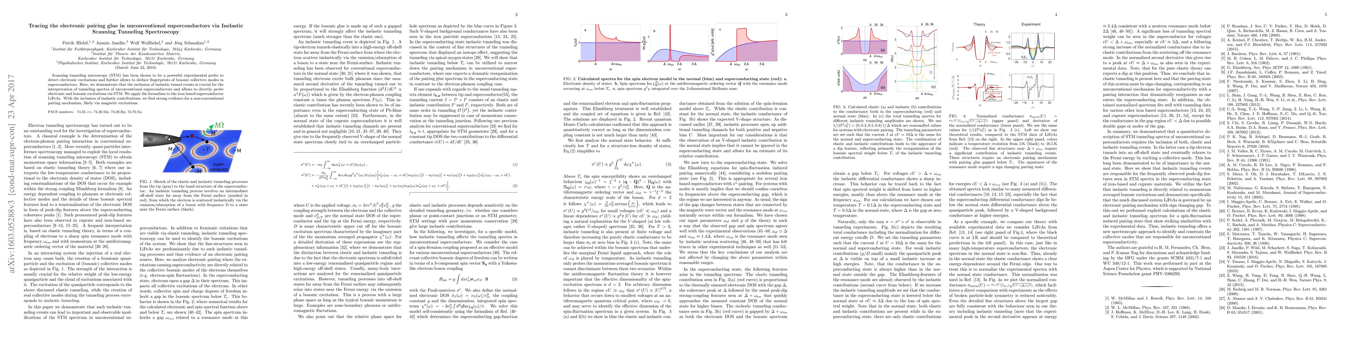 This paper uses inelastic Scanning Tunneling Spectroscopy (STM) to investigate the electronic pairing glue in unconventional superconductors, particularly focusing on iron-based systems. The study reveals that inelastic tunnel events are essential for interpreting tunneling spectra and identifying bosonic excitations, supporting the notion of a collective mode mediating the pairing state.