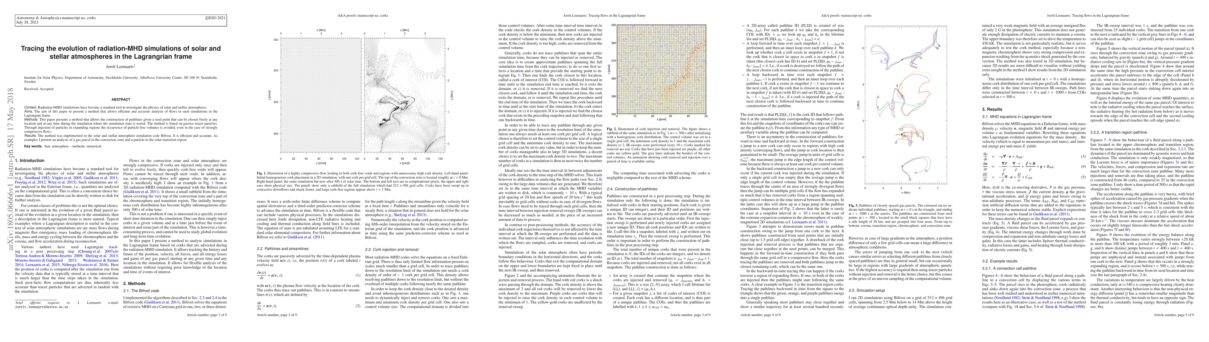 Researchers develop a method to track paths of particles in radiation-MHD simulations of solar and stellar atmospheres, enabling efficient analysis of flows in the Lagrangian frame.