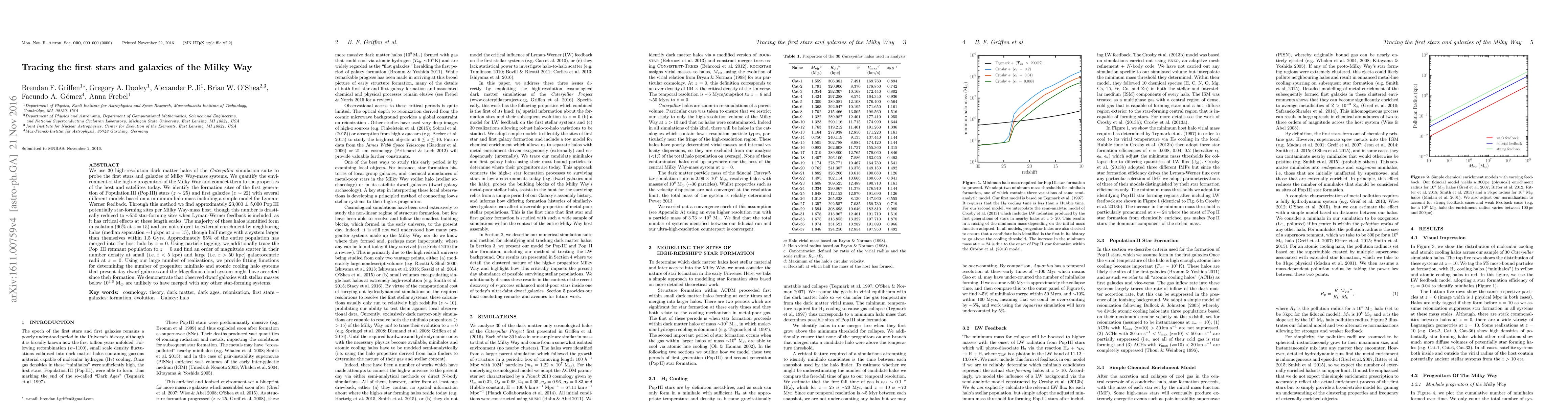 This research uses high-resolution simulations to trace the formation of the first stars and galaxies in Milky Way-mass systems, identifying approximately 23,000 star-forming sites for Population III stars, which are reduced to ~550 when considering Lyman-Werner feedback. It finds that most of these sites formed in isolation and that around 55% have merged into the host halo by the present day.