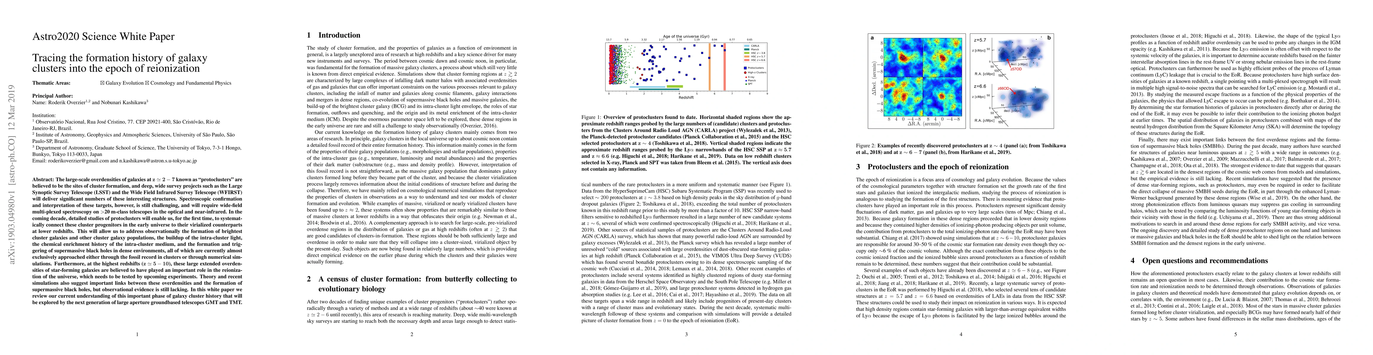 The large-scale overdensities of galaxies at z~2-7 known as protoclusters are believed to be the sites of cluster formation, and deep, wide survey projects such as the Large Synoptic Survey Telescope (LSST) and the Wide Field Infrared Survey Telescope (WFIRST) will deliver significant numbers of these interesting structures. Spectroscopic confirmation and interpretation of these targets, however, is still challenging, and will require wide-field multi-plexed spectroscopy on >20 m-class telescopes in the optical and near-infrared. In the coming decade, detailed studies of protoclusters will enable us, for the first time, to systematically connect these cluster progenitors in the early universe to their virialized counterparts at lower redshifts. This will allow us to address observationally the formation of brightest cluster galaxies and other cluster galaxy populations, the buildup of the intra-cluster light, the chemical enrichment history of the intra-cluster medium, and the formation and triggering of supermassive black holes in dense environments, all of which are currently almost exclusively approached either through the fossil record in clusters or through numerical simulations. Furthermore, at the highest redshifts (z~5-10), these large extended overdensities of star-forming galaxies are believed to have played an important role in the reionization of the universe, which needs to be tested by upcoming experiments. Theory and recent simulations also suggest important links between these overdensities and the formation of supermassive black holes, but observational evidence is still lacking. In this white paper we review our current understanding of this important phase of galaxy cluster history that will be explored by the next generation of large aperture ground-based telescopes GMT and TMT.