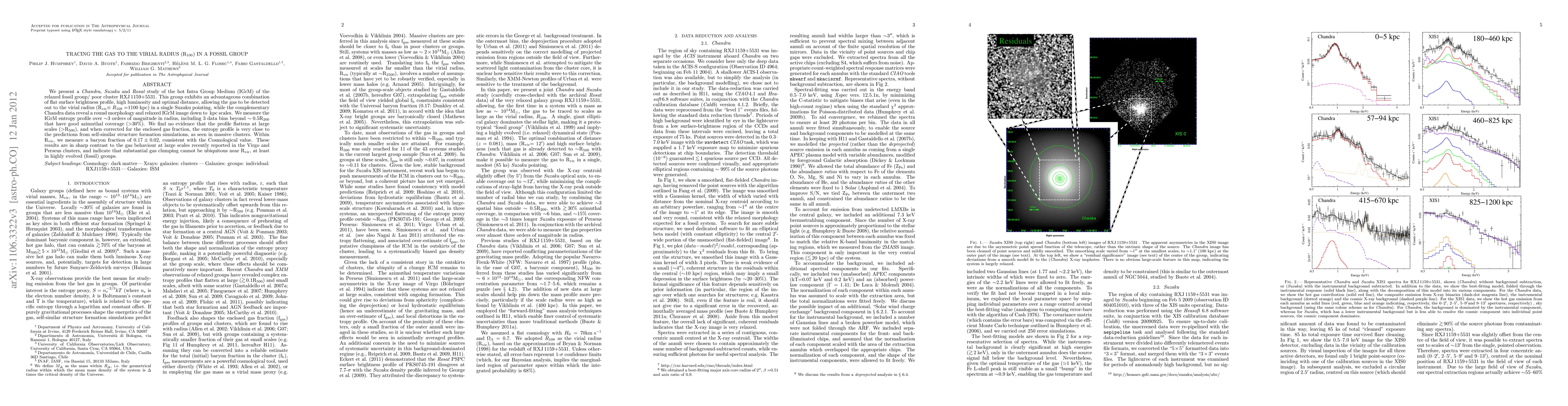 We present a Chandra, Suzaku and Rosat study of the hot Intra Group Medium (IGrM) of the relaxed fossil group/ poor cluster RXJ1159+5531. This group exhibits an advantageous combination of flat surface brightness profile, high luminosity and optimal distance, allowing the gas to be detected out to the virial radius (Rvir=R108=1100 kpc) in a single Suzaku pointing, while the complementary Chandra data reveal a round morphology and relaxed IGrM image down to kpc scales. We measure the IGrM entropy profile over 3 orders of magnitude in radius, including 3 data bins beyond 0.5R200 with azimuthal coverage (>30%). We find no evidence that the profile flattens at large scales (>R500), and when corrected for the enclosed gas fraction, the entropy profile is very close to the predictions from self-similar structure formation simulations, as seen in massive clusters. Within Rvir, we measure a baryon fraction of 0.17+/-0.02, consistent with the Cosmological value. These results are in sharp contrast to the gas behaviour at large scales recently reported in the Virgo and Perseus clusters, and indicate that substantial gas clumping cannot be ubiquitous near Rvir, at least in highly evolved (fossil) groups.