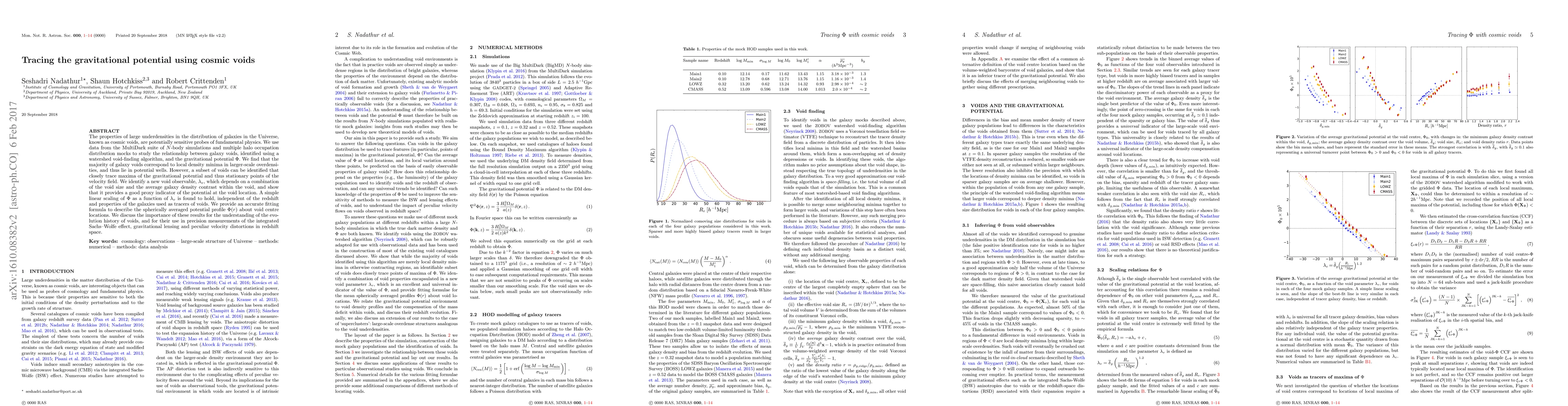 This paper investigates the relationship between cosmic voids and gravitational potential using N-body simulations and mock galaxy catalogs. It identifies a new void observable, $\lambda_v$, that correlates linearly with the gravitational potential, providing a useful proxy for potential measurements at void locations.