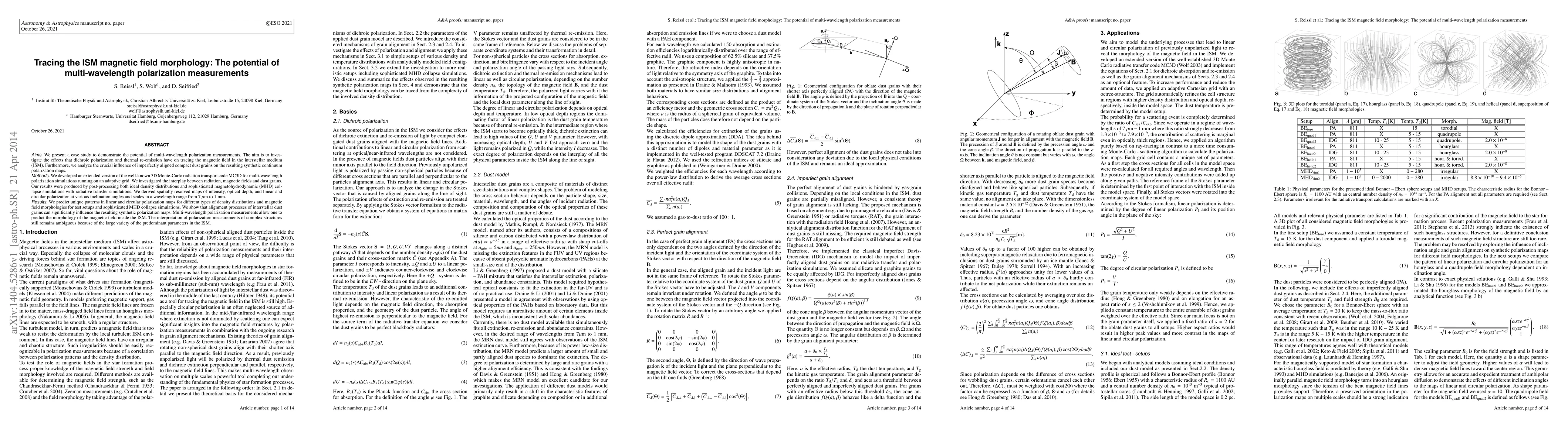 This study demonstrates the potential of multi-wavelength polarization measurements to trace the ISM magnetic field morphology, revealing unique patterns in polarization maps influenced by dichroic polarization and imperfectly aligned dust grains. The research employs an advanced Monte-Carlo code to simulate these effects, showing that multi-wavelength observations can predict magnetic field structures in the ISM.