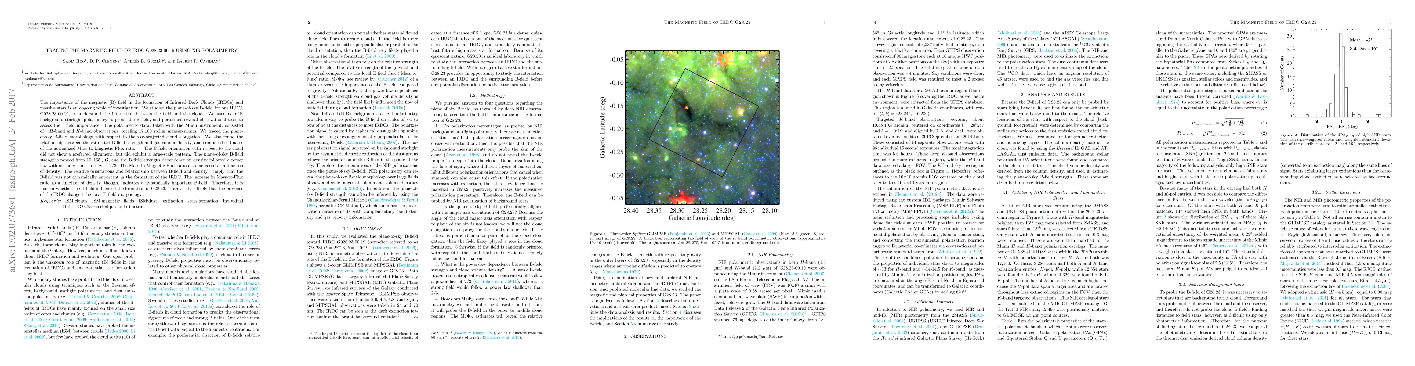 The importance of the magnetic (B) field in the formation of infrared dark clouds (IRDCs) and massive stars is an ongoing topic of investigation. We studied the plane-of-sky B field for one IRDC, G028.23-00.19, to understand the interaction between the field and the cloud. We used near-IR background starlight polarimetry to probe the B field and performed several observational tests to assess the field importance. The polarimetric data, taken with the Mimir instrument, consisted of H-band and K-band observations, totaling 17,160 stellar measurements. We traced the plane-of-sky B-field morphology with respect to the sky-projected cloud elongation. We also found the relationship between the estimated B-field strength and gas volume density, and we computed estimates of the normalized mass-to-magnetic flux ratio. The B-field orientation with respect to the cloud did not show a preferred alignment, but it did exhibit a large-scale pattern. The plane-of-sky B-field strengths ranged from 10 to 165 {\mu}G, and the B-field strength dependence on density followed a power law with an index consistent with 2/3. The mass-to-magnetic flux ratio also increased as a function of density. The relative orientations and relationship between the B field and density imply that the B field was not dynamically important in the formation of the IRDC. The increase in mass-to-flux ratio as a function of density, though, indicates a dynamically important B field. Therefore, it is unclear whether the B field influenced the formation of G28.23. However, it is likely that the presence of the IRDC changed the local B-field morphology.