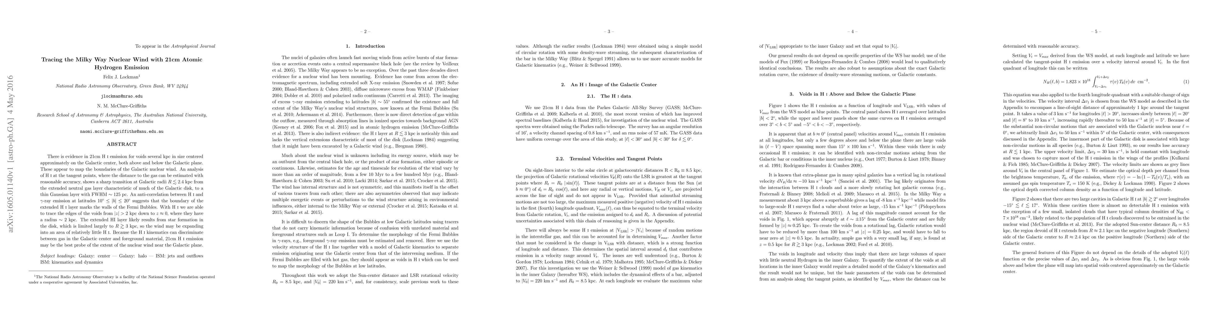 The study uses 21cm atomic hydrogen emission to map the boundaries of the Milky Way's nuclear wind, tracing voids centered on the Galactic centre and expanding into areas with limited hydrogen gas.
