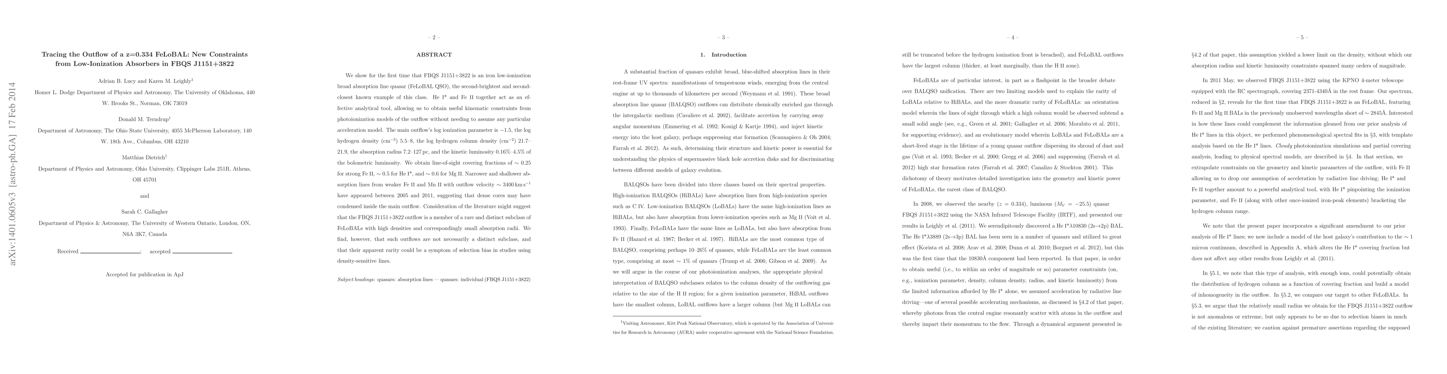 We show for the first time that FBQS J1151+3822 is an iron low-ionization broad absorption line quasar (FeLoBAL QSO), the second-brightest and second-closest known example of this class. He I* and Fe II together act as an effective analytical tool, allowing us to obtain useful kinematic constraints from photoionization models of the outflow without needing to assume any particular acceleration model. The main outflow's log ionization parameter is -1.5, the log hydrogen density [cm^(-3)] 5.5 to 8, the log hydrogen column density [cm^(-2)] 21.7 to 21.9, the absorption radius 7.2 to 127 pc, and the kinetic luminosity 0.16% to 4.5% of the bolometric luminosity. We obtain line-of-sight covering fractions of ~0.25 for strong Fe II, ~0.5 for He I*, and ~0.6 for Mg II. Narrower and shallower absorption lines from weaker Fe II and Mn II with outflow velocity ~3400 km/s have appeared between 2005 and 2011, suggesting that dense cores may have condensed inside the main outflow. Consideration of the literature might suggest that the FBQS J1151+3822 outflow is a member of a rare and distinct sub-class of FeLoBALs with high densities and correspondingly small absorption radii. We find, however, that such outflows are not necessarily a distinct sub-class, and that their apparent rarity could be a symptom of selection bias in studies using density-sensitive lines.
