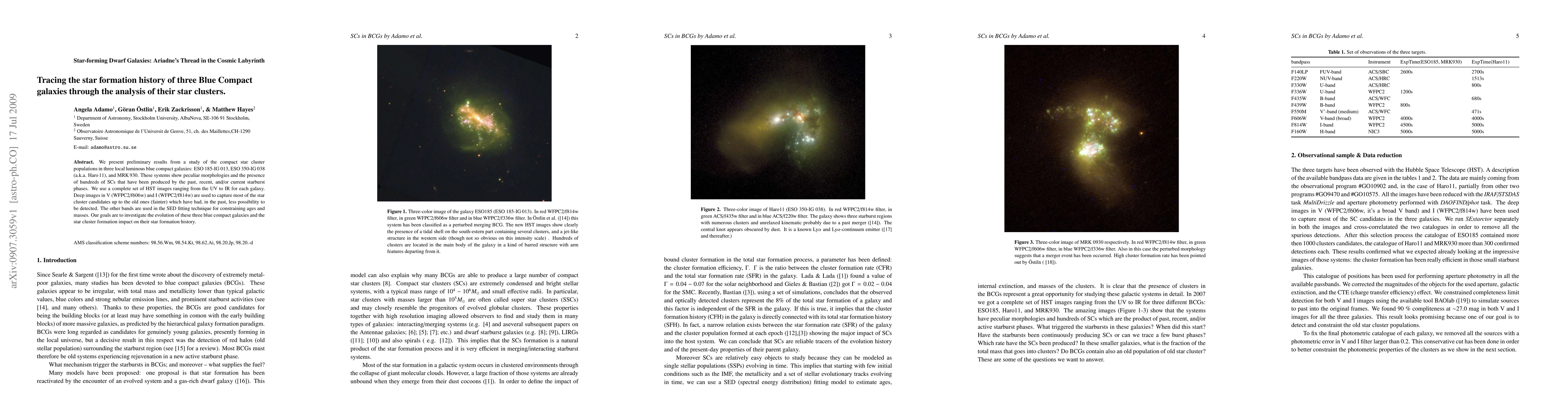 This study examines three Blue Compact galaxies to understand their star formation history through analyzing hundreds of compact star clusters. The research aims to investigate how these clusters influence the galaxies' evolution and star formation history.