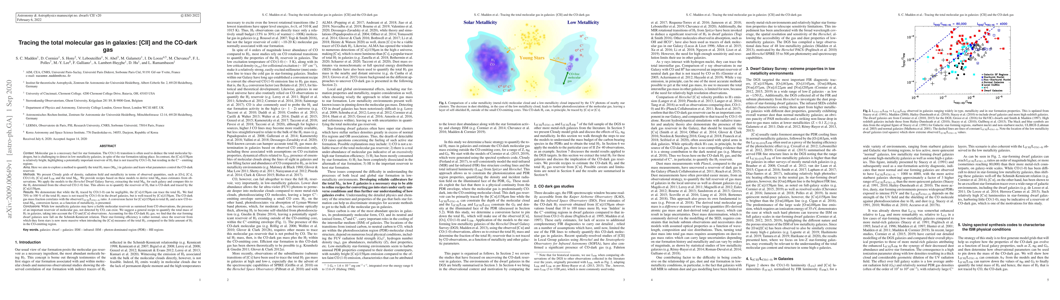 While the CO(1-0) transition is often used to deduce the total molecular hydrogen in galaxies, it is challenging to detect in low metallicity galaxies, in spite of the star formation taking place. In contrast, the [CII] 158 micron line is relatively bright, highlighting a potentially important reservoir of H2 that is not traced by CO(1-0), but residing in the C+ - emitting regions. We explore a method to quantify the total H2 mass (MH2) in galaxies and learn what parameters control the CO-dark gas reservoir. We present Cloudy grids of density, radiation field and metallicity in terms of observed quantities, such as [OI], [CI], CO(1-0), [CII], total infrared luminosity and the total MH2 and provide recipes based on these models to derive total MH2 mass estimates from observations. The models are applied to the Herschel Dwarf Galaxy Survey, extracting the total MH2 for each galaxy which is compared to the H2 determined from the observed CO(1-0) line. While the H2 traced by CO(1-0) can be negligible, the [CII] 158 micron line can trace the total H2. 70% to 100% of the total H2 mass is not traced by CO(1-0) in the dwarf galaxies, but is well-traced by [CII] 158 micron line. The CO-dark gas mass fraction correlates with the observed L[CII]/LCO(1-0) ratio. A conversion factor for [CII] luminosity to total H2 and a new CO-to-total-MH2 conversion factor, as a function of metallicity, is presented. A recipe is provided to quantify the total mass of H2 in galaxies, taking into account the CO and [CII] observations. Accounting for this CO-dark H2 gas, we find that the star forming dwarf galaxies now fall on the Schmidt-Kennicutt relation. Their star-forming efficiency is rather normal, since the reservoir from which they form stars is now more massive when introducing the [CII] measures of the total H2, compared to the little amount of H2 in the CO-emitting region.