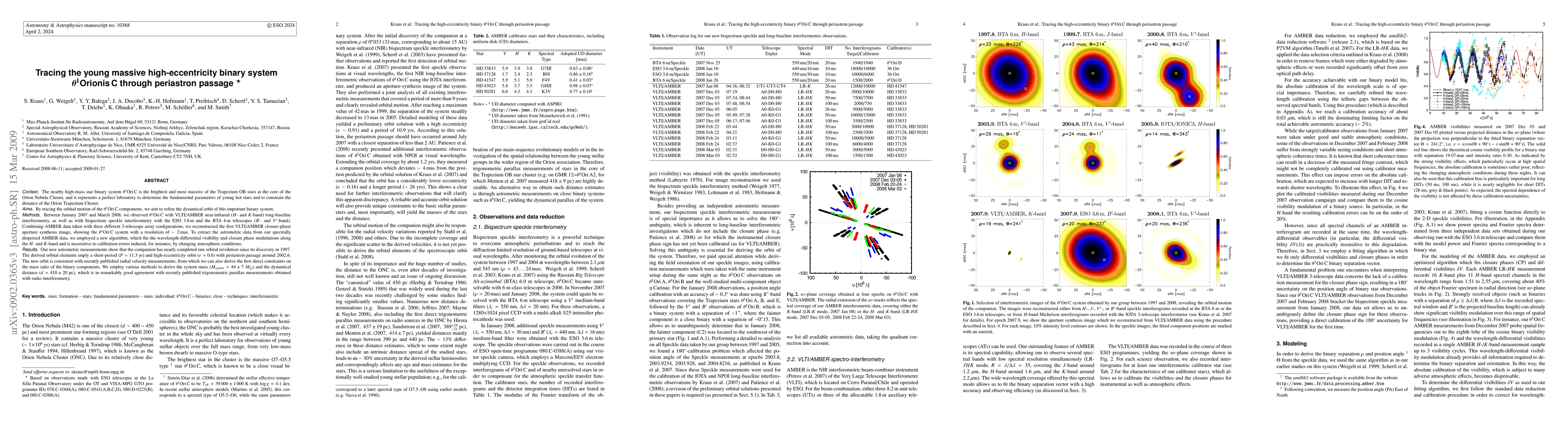 This paper presents observations of the high-mass binary system Theta 1 Orionis C using VLTI/AMBER interferometry and speckle interferometry. The study reveals a short-period, high-eccentricity orbit with periastron passage around 2002.6, and provides new constraints on the system's mass and distance.