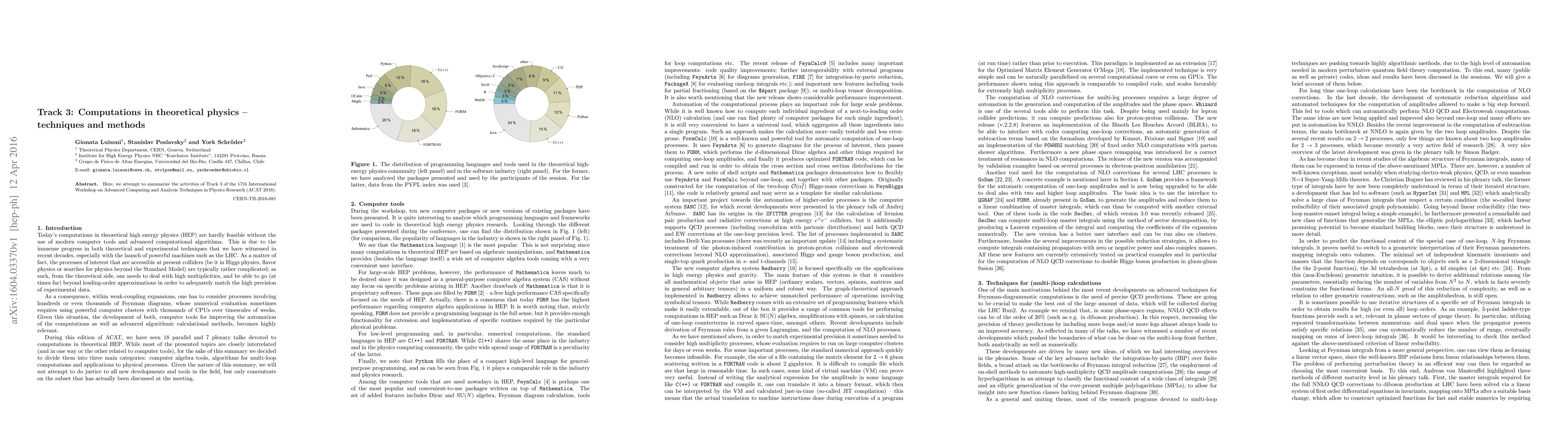 Here, we attempt to summarize the activities of Track 3 of the 17th International Workshop on Advanced Computing and Analysis Techniques in Physics Research (ACAT 2016).