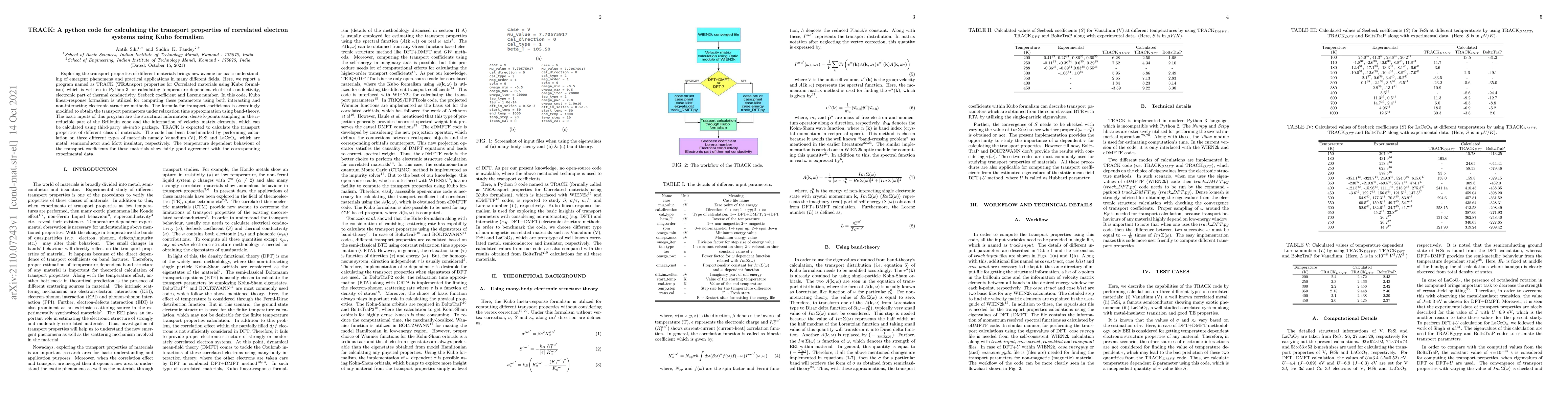 This paper introduces TRACK, a Python program for calculating transport properties of various materials using the Kubo formalism. It computes electrical conductivity, thermal conductivity, Seebeck coefficient, and Lorenz number. Benchmarked against experimental data for Vanadium, FeSi, and LaCoO$_3$, TRACK demonstrates good agreement, offering a tool for studying transport properties in different material classes.