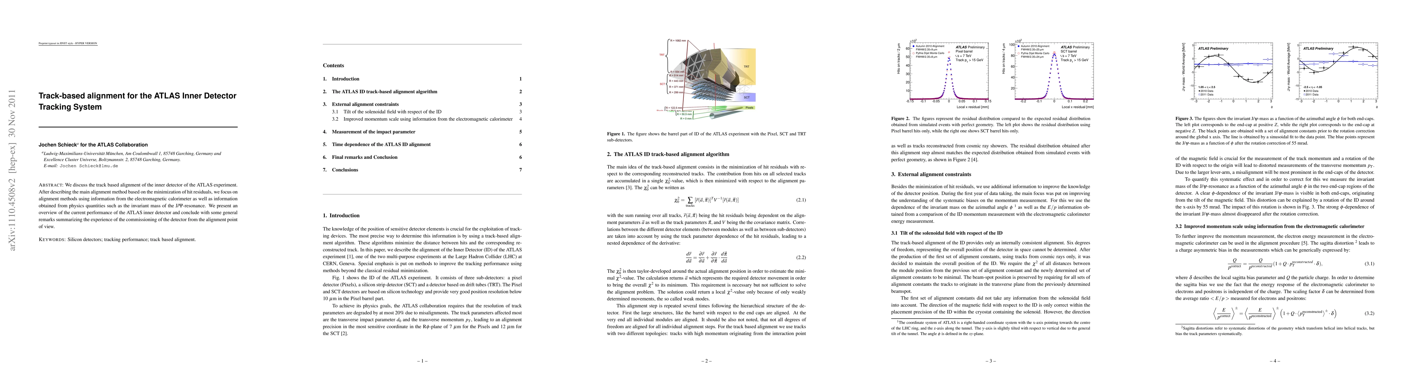 Researchers at ATLAS experiment discuss track-based alignment for Inner Detector, utilizing hit residuals, electromagnetic calorimeter information, and physics quantities like J/$θ$-resonance invariant mass.
