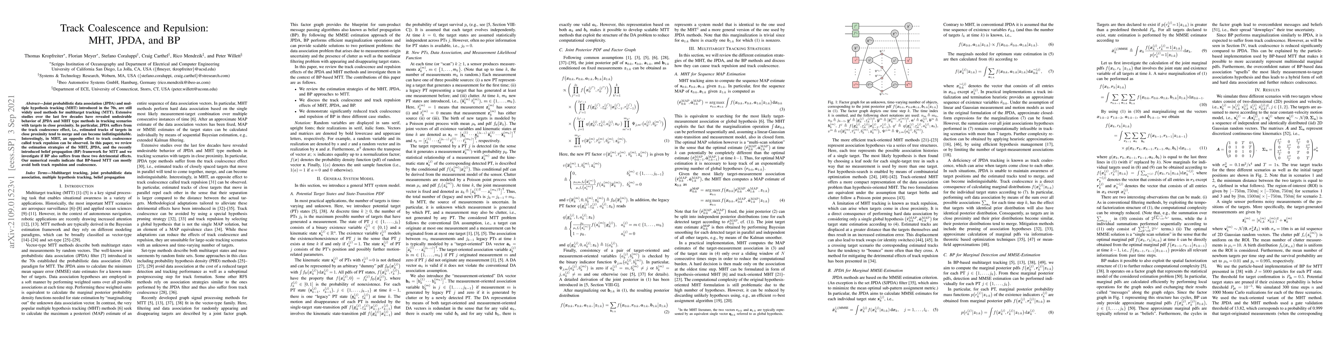 Joint probabilistic data association (JPDA) and multiple hypothesis tracking (MHT) introduced in the 70s, are still widely used methods for multitarget tracking (MTT). Extensive studies over the last few decades have revealed undesirable behavior of JPDA and MHT type methods in tracking scenarios with targets in close proximity. In particular, JPDA suffers from the track coalescence effect, i.e., estimated tracks of targets in close proximity tend to merge and can become indistinguishable. Interestingly, in MHT, an opposite effect to track coalescence called track repulsion can be observed. In this paper, we review the estimation strategies of the MHT, JPDA, and the recently introduced belief propagation (BP) framework for MTT and we investigate if BP also suffers from these two detrimental effects. Our numerical results indicate that BP-based MTT can mostly avoid both track repulsion and coalescence.