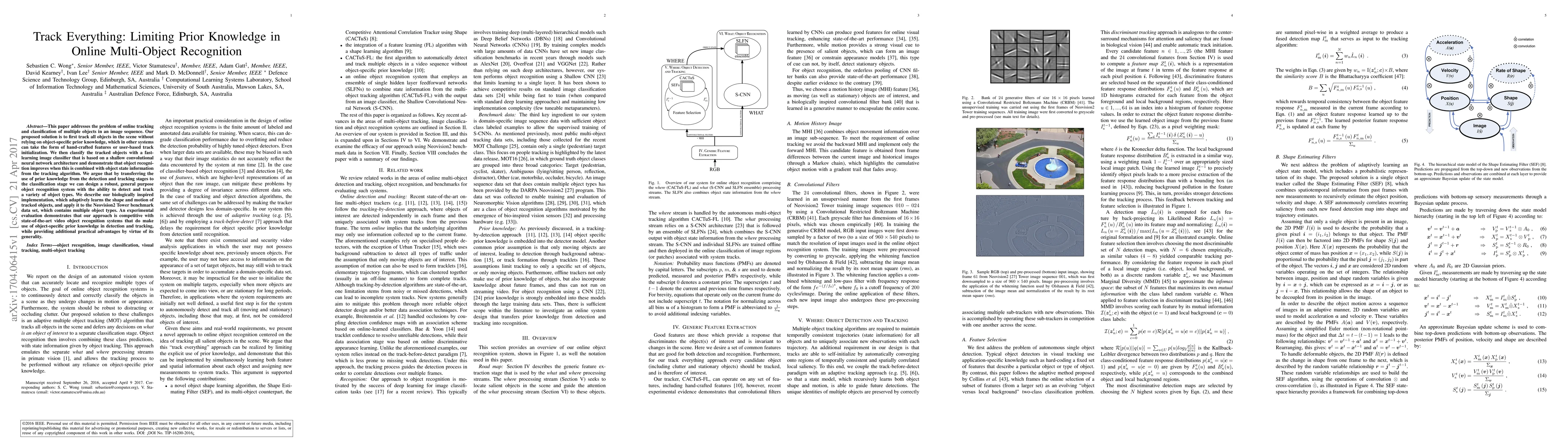 This paper addresses the problem of online tracking and classification of multiple objects in an image sequence. Our proposed solution is to first track all objects in the scene without relying on object-specific prior knowledge, which in other systems can take the form of hand-crafted features or user-based track initialization. We then classify the tracked objects with a fast-learning image classifier that is based on a shallow convolutional neural network architecture and demonstrate that object recognition improves when this is combined with object state information from the tracking algorithm. We argue that by transferring the use of prior knowledge from the detection and tracking stages to the classification stage we can design a robust, general purpose object recognition system with the ability to detect and track a variety of object types. We describe our biologically inspired implementation, which adaptively learns the shape and motion of tracked objects, and apply it to the Neovision2 Tower benchmark data set, which contains multiple object types. An experimental evaluation demonstrates that our approach is competitive with state-of-the-art video object recognition systems that do make use of object-specific prior knowledge in detection and tracking, while providing additional practical advantages by virtue of its generality.