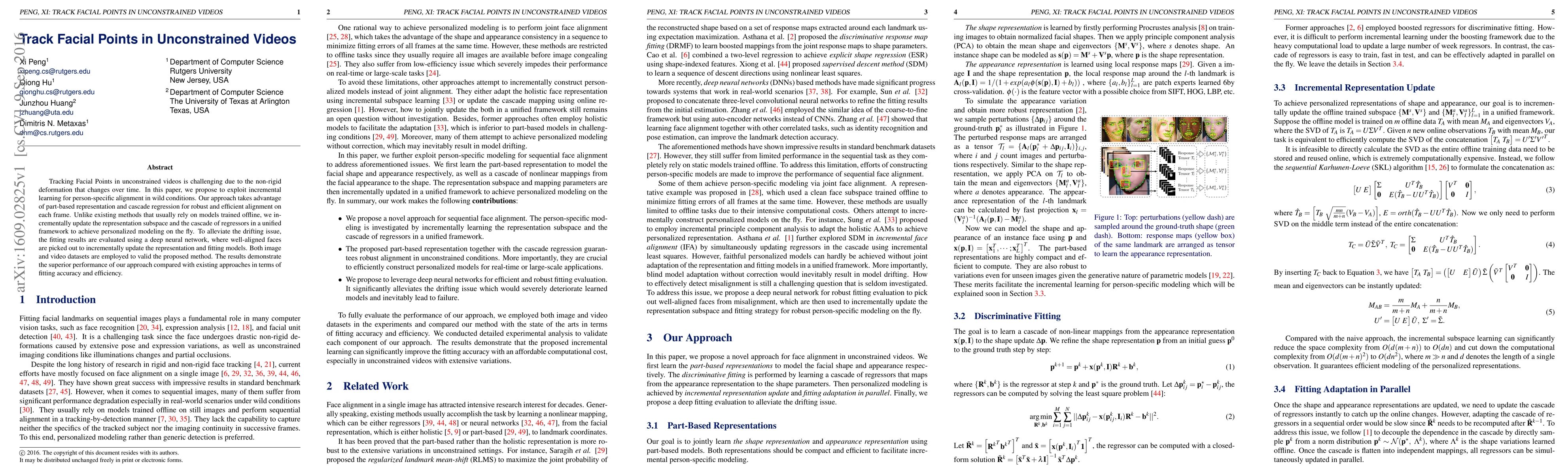 Tracking Facial Points in unconstrained videos is challenging due to the non-rigid deformation that changes over time. In this paper, we propose to exploit incremental learning for person-specific alignment in wild conditions. Our approach takes advantage of part-based representation and cascade regression for robust and efficient alignment on each frame. Unlike existing methods that usually rely on models trained offline, we incrementally update the representation subspace and the cascade of regressors in a unified framework to achieve personalized modeling on the fly. To alleviate the drifting issue, the fitting results are evaluated using a deep neural network, where well-aligned faces are picked out to incrementally update the representation and fitting models. Both image and video datasets are employed to valid the proposed method. The results demonstrate the superior performance of our approach compared with existing approaches in terms of fitting accuracy and efficiency.