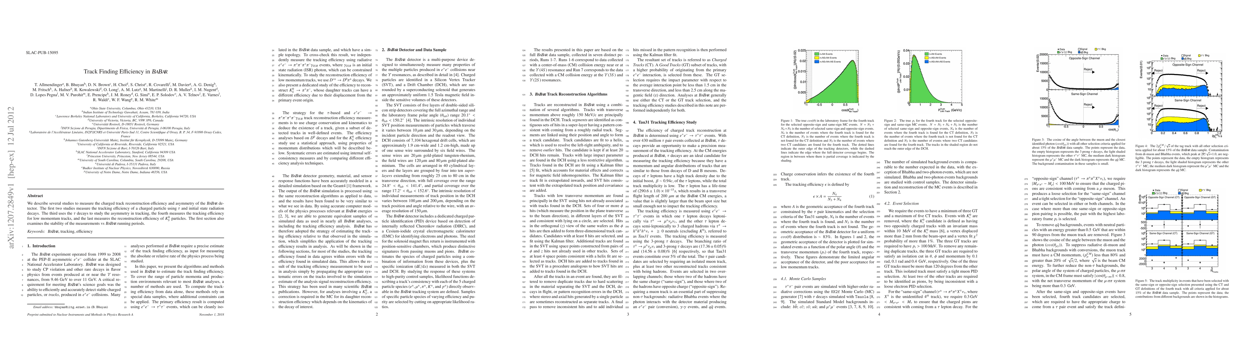 We describe several studies to measure the charged track reconstruction efficiency and asymmetry of the BaBar detector. The first two studies measure the tracking efficiency of a charged particle using $\tau$ and initial state radiation decays. The third uses the $\tau$ decays to study the asymmetry in tracking, the fourth measures the tracking efficiency for low momentum tracks, and the last measures the reconstruction efficiency of $K_S^0$ particles. The first section also examines the stability of the measurements vs BaBar running periods.
