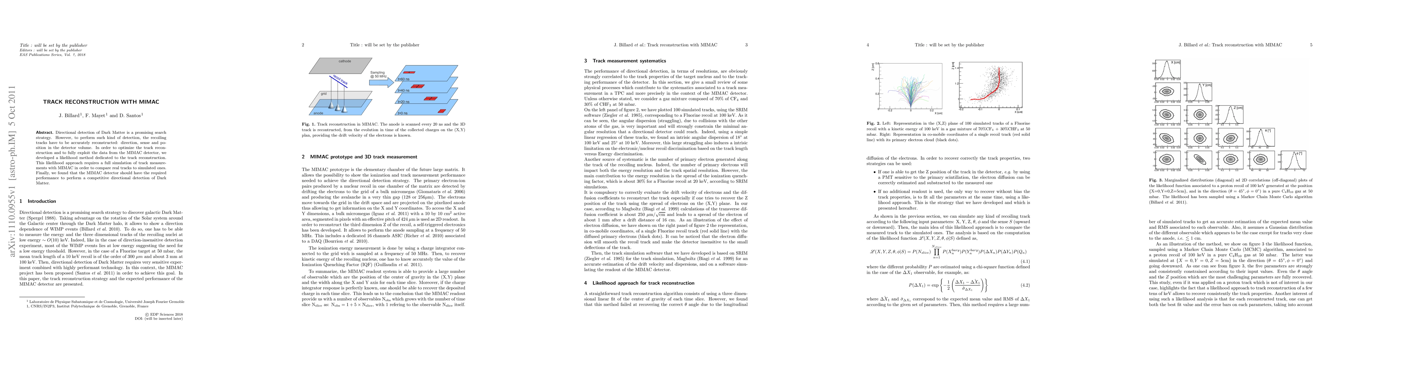 The paper presents a likelihood method for optimizing track reconstruction in the MIMAC detector, crucial for directional detection of Dark Matter. The method, validated through full simulation, indicates that MIMAC can achieve the necessary performance for competitive Dark Matter detection.