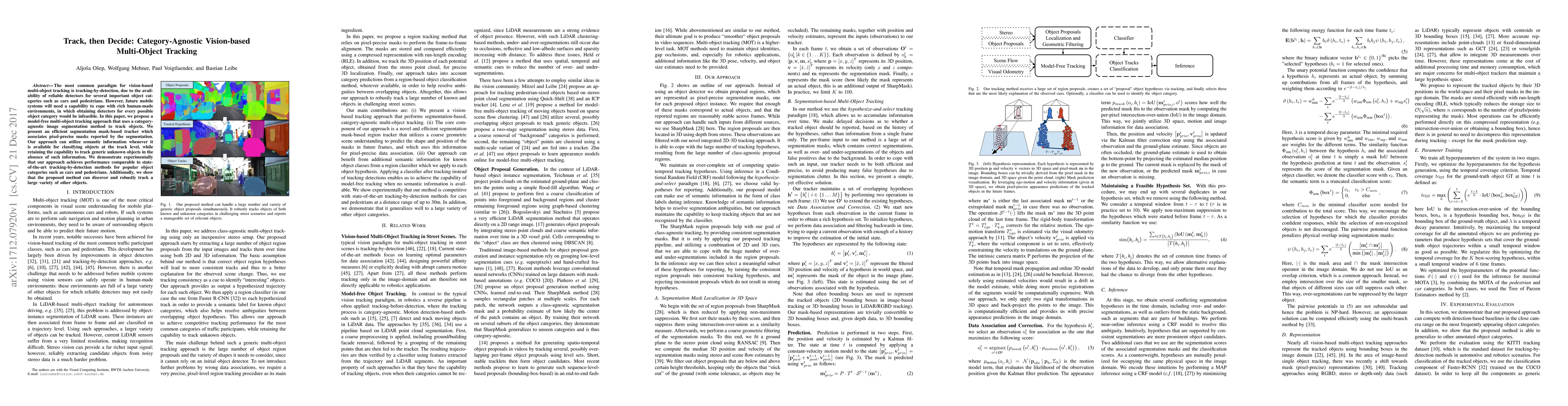 This paper proposes a category-agnostic vision-based multi-object tracking approach that uses image segmentation to track objects without relying on detectors for specific categories. The method achieves performance comparable to state-of-the-art methods while discovering and robustly tracking a large variety of unknown objects.
