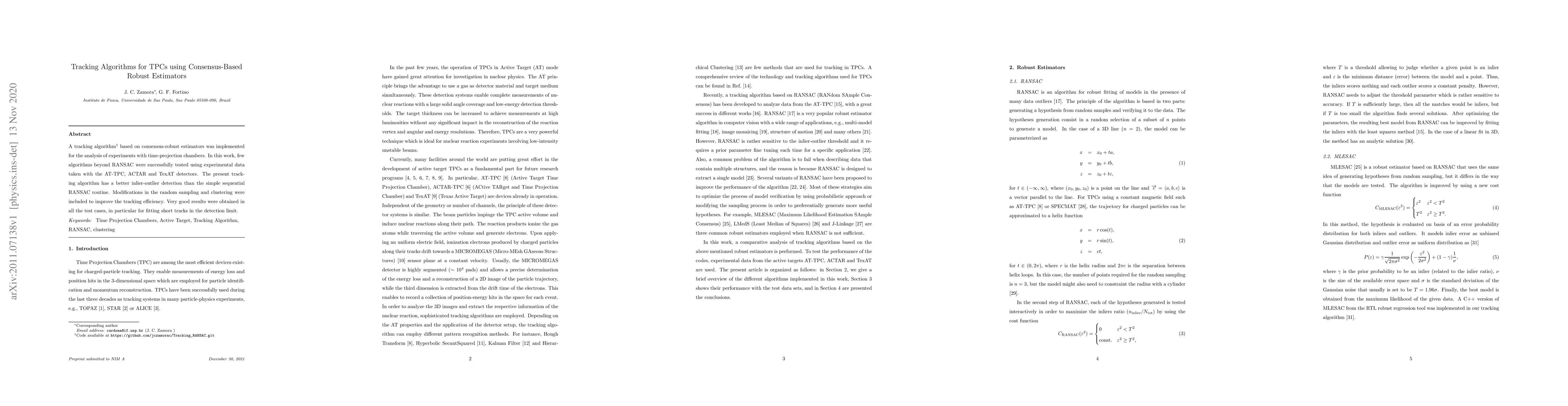 This paper presents a tracking algorithm utilizing consensus-based robust estimators for time-projection chambers, outperforming traditional RANSAC methods with enhanced inlier-outlier detection and improved tracking efficiency, validated through experiments with AT-TPC, ACTAR, and TexAT detectors.