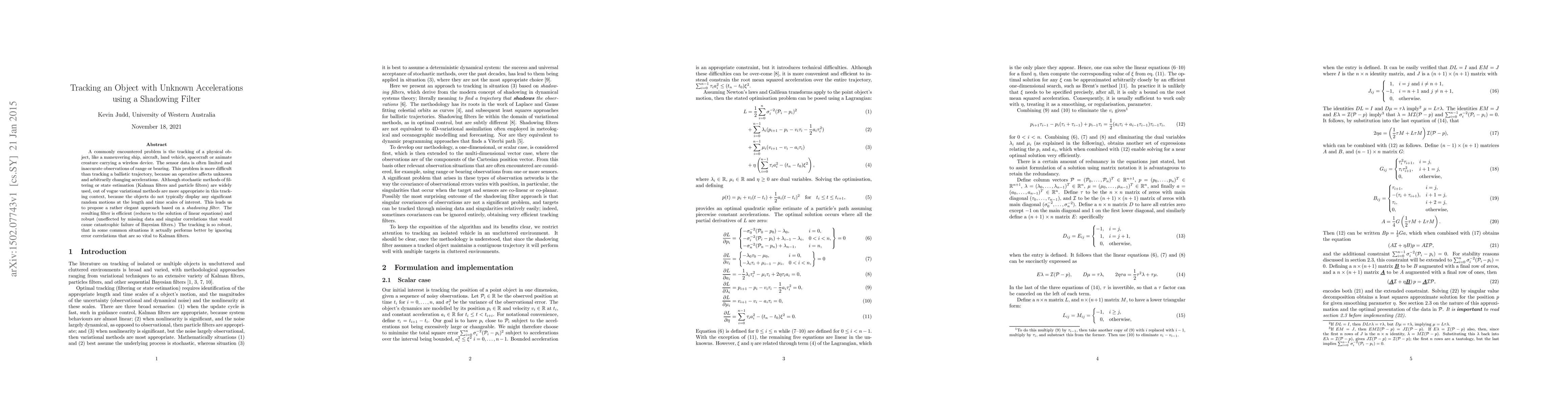 This paper proposes a novel 'shadowing filter' for tracking objects with unknown accelerations, like vehicles or creatures. The filter is efficient, reducing to linear equations, and robust, handling missing data and singular correlations without failure. It often outperforms Kalman filters by disregarding error correlations relevant at specific scales.