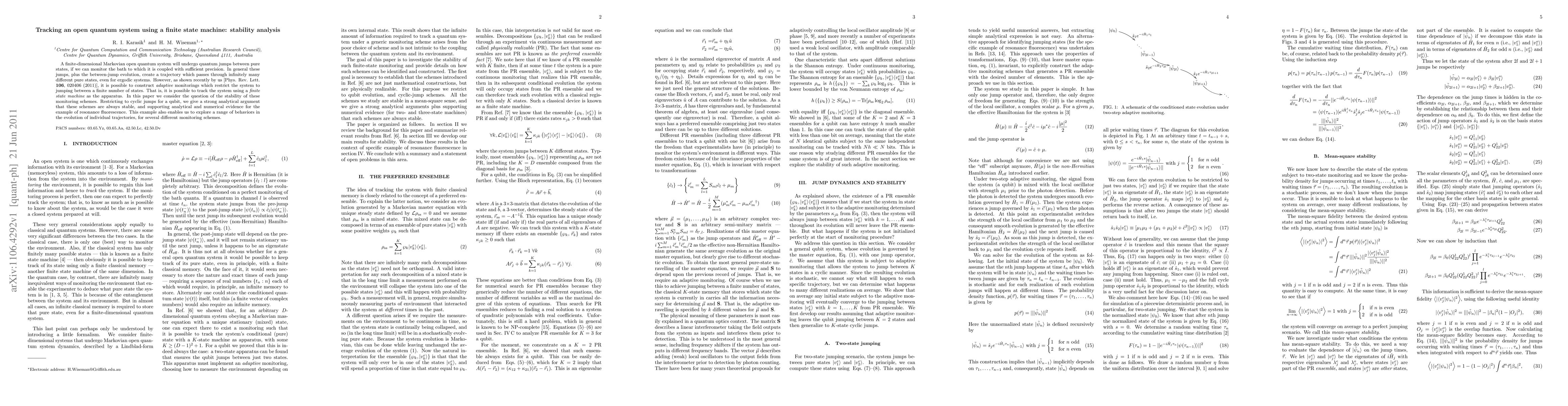 A finite-dimensional Markovian open quantum system will undergo quantum jumps between pure states, if we can monitor the bath to which it is coupled with sufficient precision. In general these jumps, plus the between-jump evolution, create a trajectory which passes through infinitely many different pure states, even for ergodic systems. However, as shown recently by us [Phys. Rev. Lett. \textbf{106}, 020406 (2011)], it is possible to construct {\em adaptive} monitorings which restrict the system to jumping between a finite number of states. That is, it is possible to track the system using a {\em finite state machine} as the apparatus. In this paper we consider the question of the stability of these monitoring schemes. Restricting to cyclic jumps for a qubit, we give a strong analytical argument that these schemes are always stable, and supporting analytical and numerical evidence for the example of resonance fluorescence. This example also enables us to explore a range of behaviors in the evolution of individual trajectories, for several different monitoring schemes.