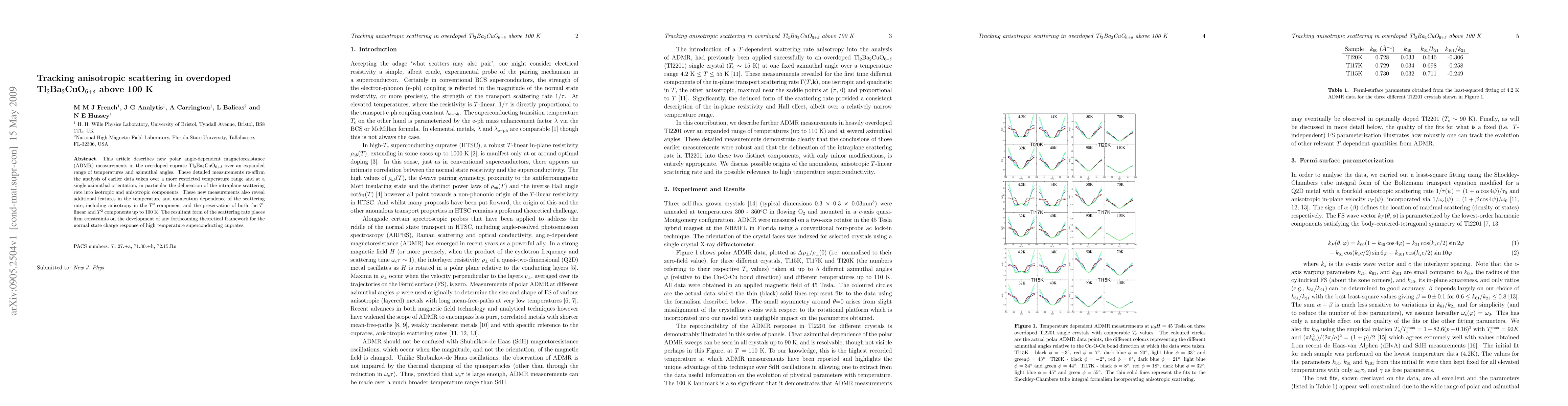 This article describes new polar angle-dependent magnetoresistance (ADMR) measurements in the overdoped cuprate Tl$_2$Ba$_2$CuO$_{6+\delta}$ over an expanded range of temperatures and azimuthal angles. These detailed measurements re-affirm the analysis of earlier data taken over a more restricted temperature range and at a single azimuthal orientation, in particular the delineation of the intraplane scattering rate into isotropic and anisotropic components. These new measurements also reveal additional features in the temperature and momentum dependence of the scattering rate, including anisotropy in the $T^2$ component and the preservation of both the $T$-linear and $T^2$ components up to 100 K. The resultant form of the scattering rate places firm constraints on the development of any forthcoming theoretical framework for the normal state charge response of high temperature superconducting cuprates.