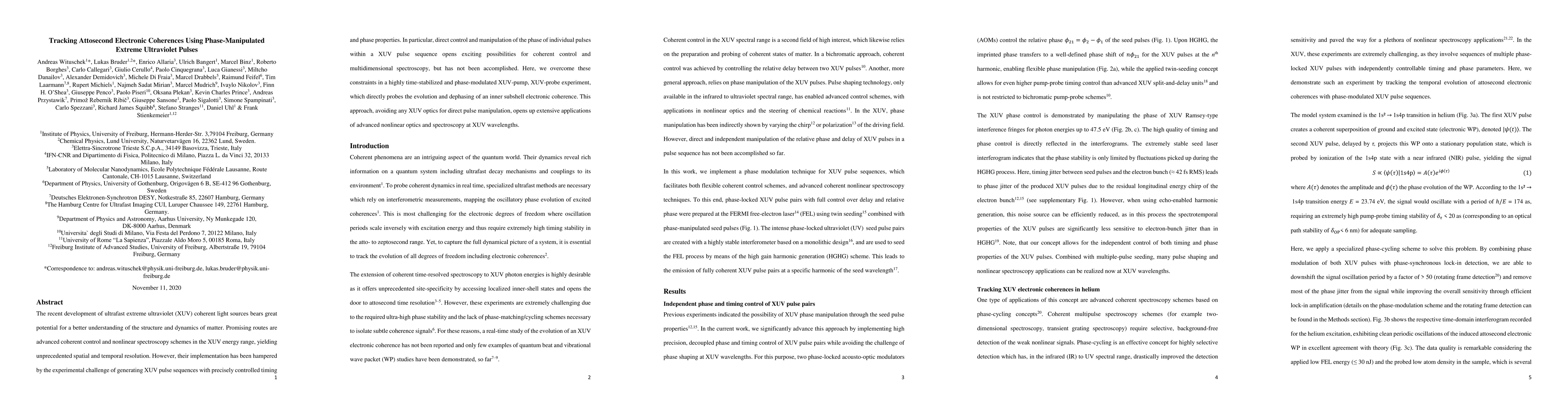 This paper presents a novel method for generating and manipulating phase-controlled extreme ultraviolet (XUV) pulses to track attosecond electronic coherences, overcoming the challenge of precise timing and phase control in XUV pulse sequences. The proposed time-stabilized XUV-pump, XUV-probe technique enables direct observation of inner subshell electronic coherence evolution, paving the way for advanced nonlinear spectroscopy applications.