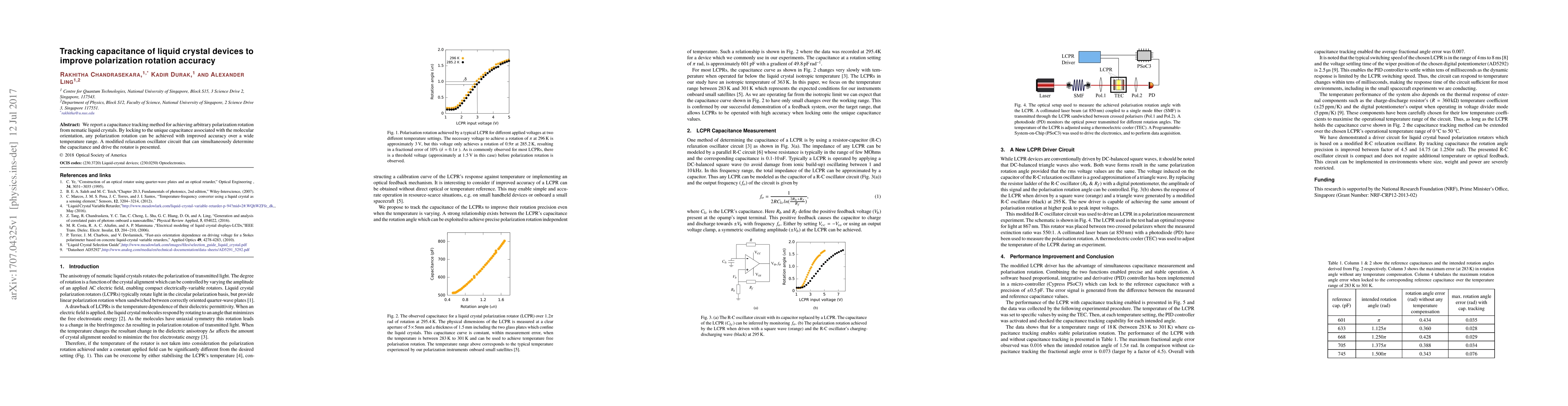 Researchers developed a method to track capacitance in liquid crystal devices, enabling precise polarization rotation over a wide temperature range. This achievement improves the accuracy of arbitrary polarization rotation using a modified relaxation oscillator circuit.