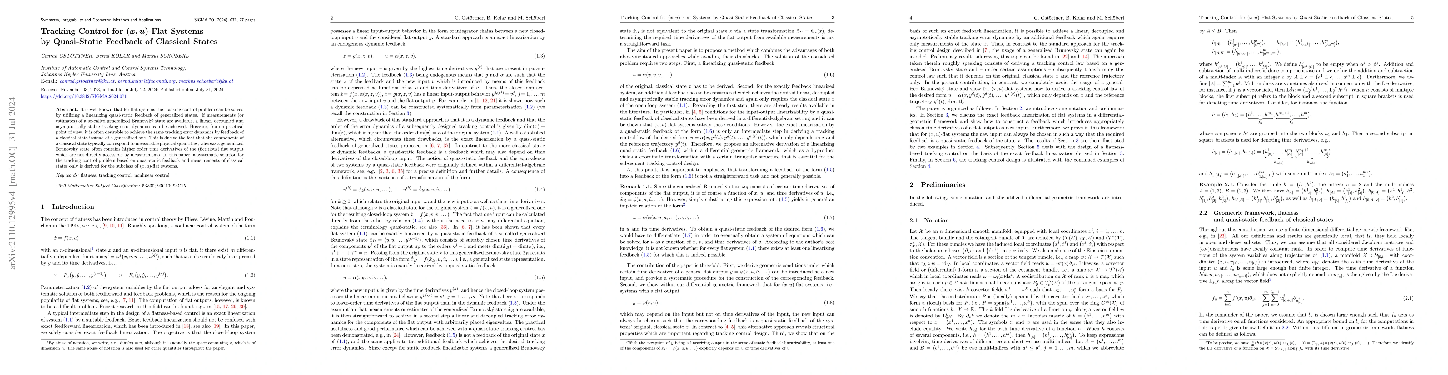 This paper proposes a method for tracking control of (x,u)-flat systems using quasi-static feedback based on classical states, which are typically measurable physical quantities, instead of generalized states. This approach aims to achieve linear, decoupled, and asymptotically stable tracking error dynamics.