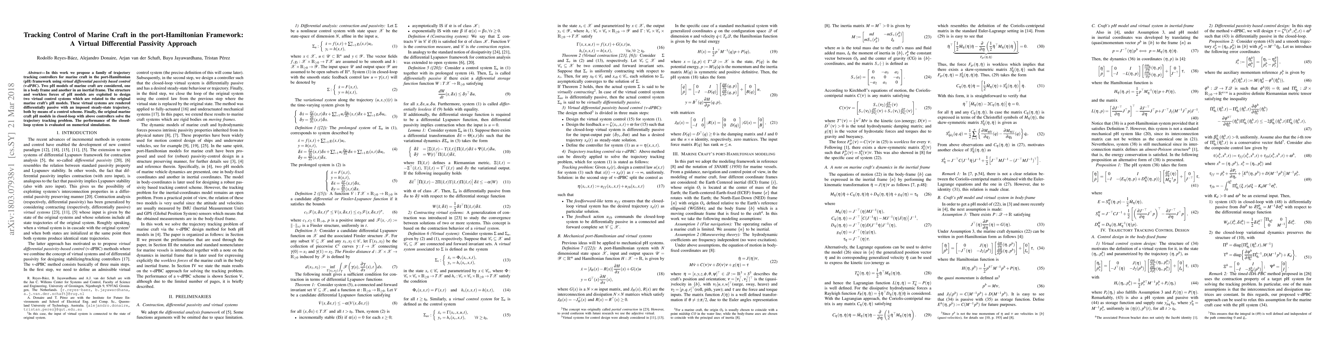 In this work we propose a family of trajectory tracking controllers for marine craft in the port-Hamiltonian (pH) framework using virtual differential passivity based control (v-dPBC). Two pH models of marine craft are considered, one in a body frame and another in an inertial frame. The structure and workless forces of pH models are exploited to design two virtual control systems which are related to the original marine craft's pH models. These virtual systems are rendered differentially passive with an imposed steady-state trajectory, both by means of a control scheme. Finally, the original marine craft pH models in closed-loop with above controllers solve the trajectory tracking problem. The performance of the closedloop system is evaluated on numerical simulations.
