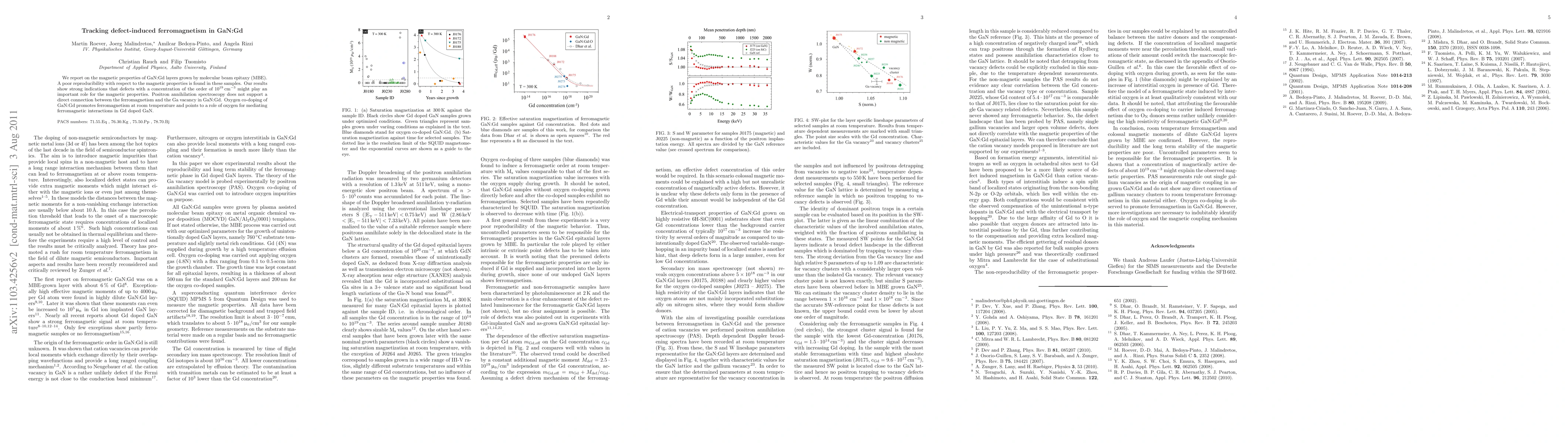 We report on the magnetic properties of GaN:Gd layers grown by molecular beam epitaxy (MBE). A poor reproducibility with respect to the magnetic properties is found in these samples. Our results show strong indications that defects with a concentration of the order of 10^19 cm^-3 might play an important role for the magnetic properties. Positron annihilation spectroscopy does not support the suggested connection between the ferromagnetism and the Ga vacancy in GaN:Gd. Oxygen co-doping of GaN:Gd promotes ferromagnetism at room temperature and points to a role of oxygen for mediating ferromagnetic interactions in Gd doped GaN.