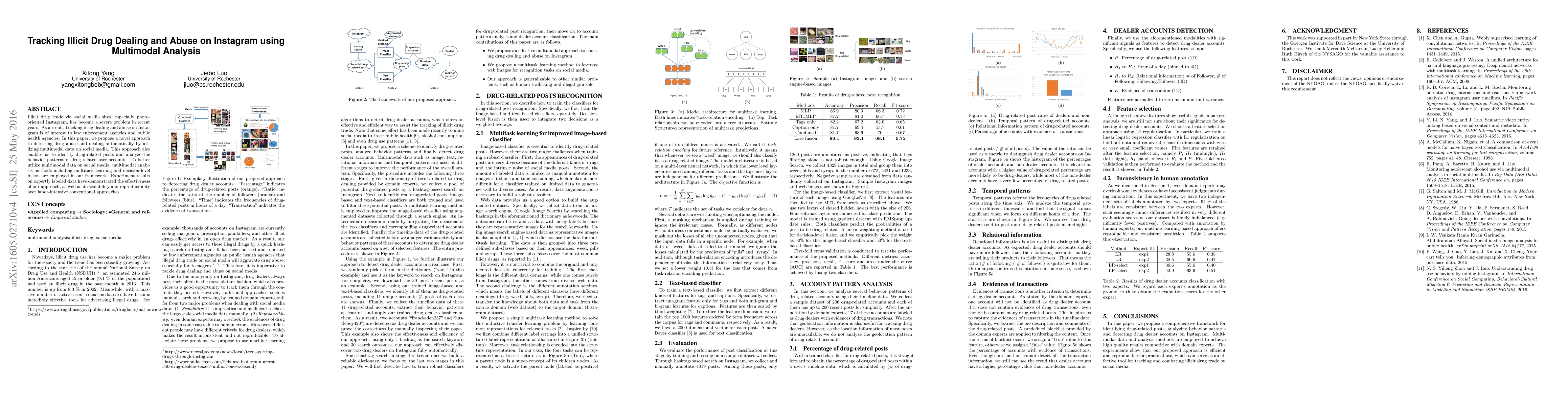 This paper proposes a novel multimodal analysis framework to automatically detect illicit drug dealing and abuse on Instagram, leveraging both textual and visual data. It employs methods like multitask learning and decision-level fusion to identify drug-related posts and analyze user behavior patterns, demonstrating effectiveness, scalability, and reproducibility compared to traditional methods.