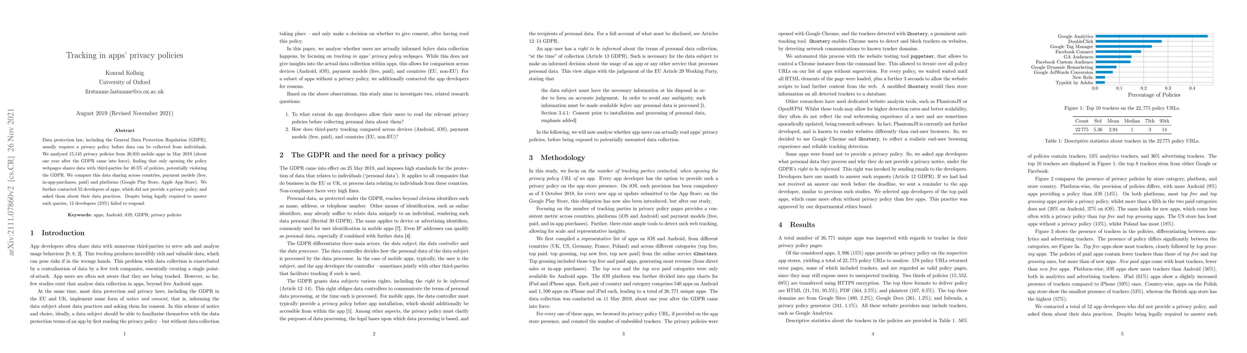 A large-scale analysis of popular mobile apps' privacy policies was conducted to understand tracking practices when users access their privacy policies.