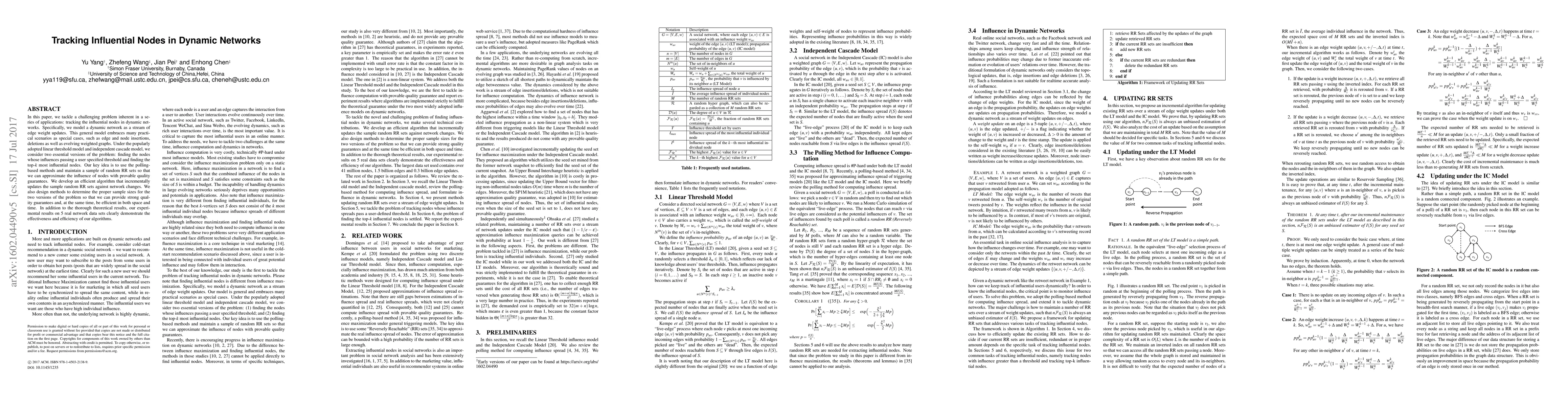This paper proposes efficient algorithms for tracking influential nodes in dynamic networks by using polling-based methods to maintain random RR sets, ensuring both strong quality guarantees and computational efficiency. Experimental results on real datasets validate the effectiveness of the proposed approach.