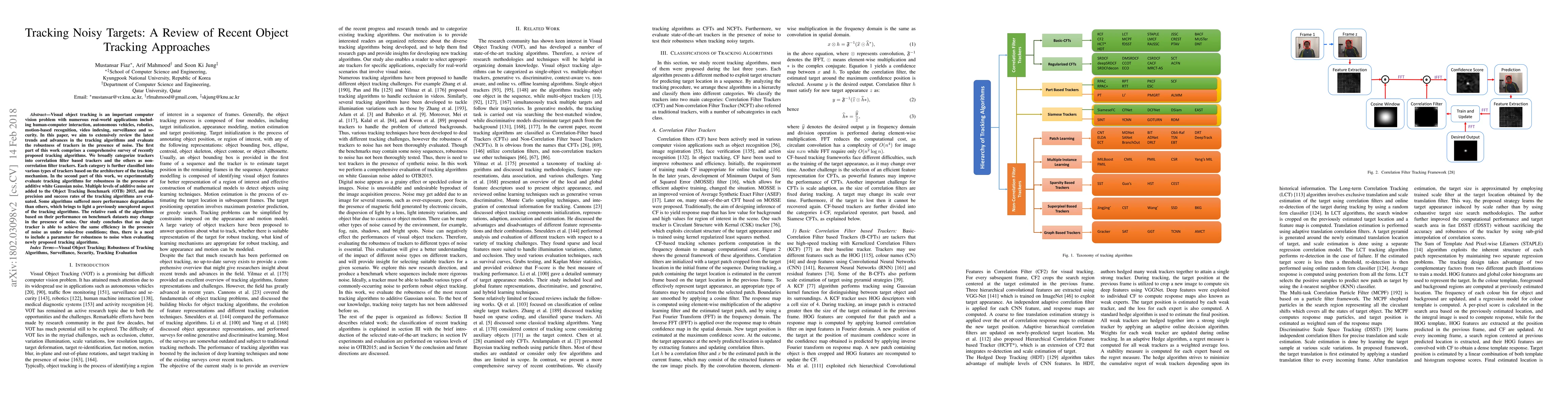 This paper reviews recent advances in visual object tracking algorithms, categorizing them into correlation filter-based and non-correlation filter-based trackers. It evaluates the robustness of these trackers under additive white Gaussian noise, revealing that performance can significantly degrade in noisy conditions, challenging the conventional ranking of trackers.