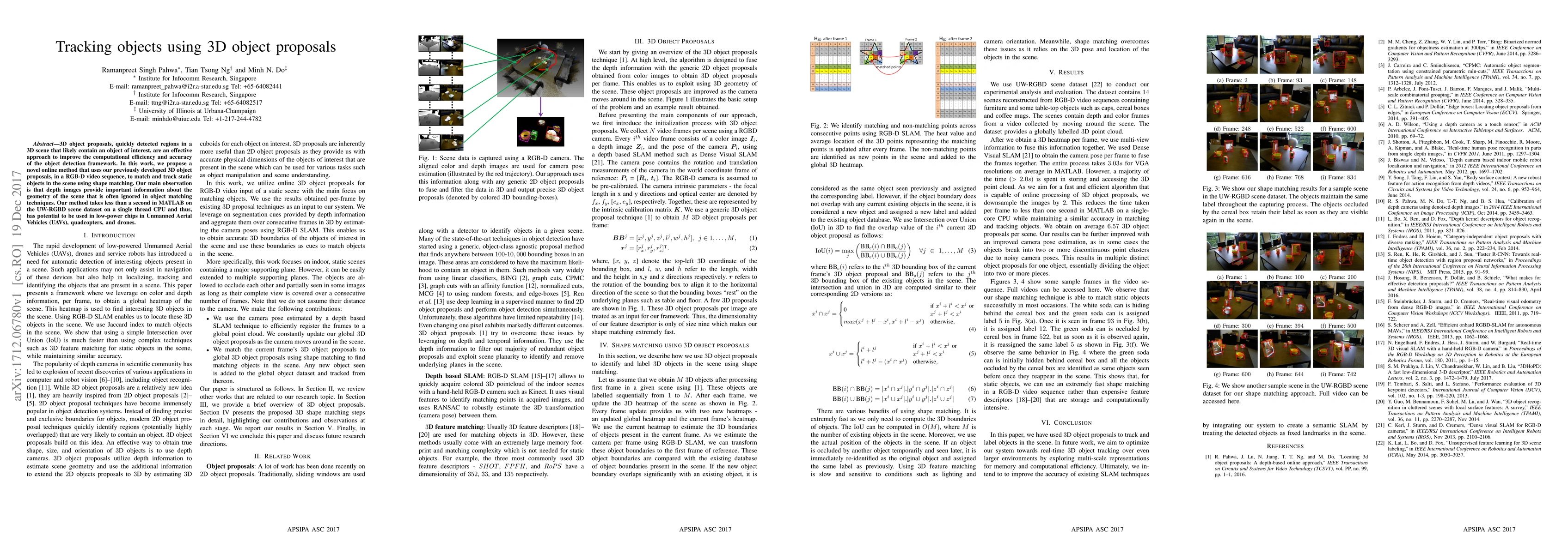 The paper introduces an efficient online 3D shape matching method using depth-based SLAM for tracking objects in RGB-D video sequences, providing precise 3D object proposals per frame.