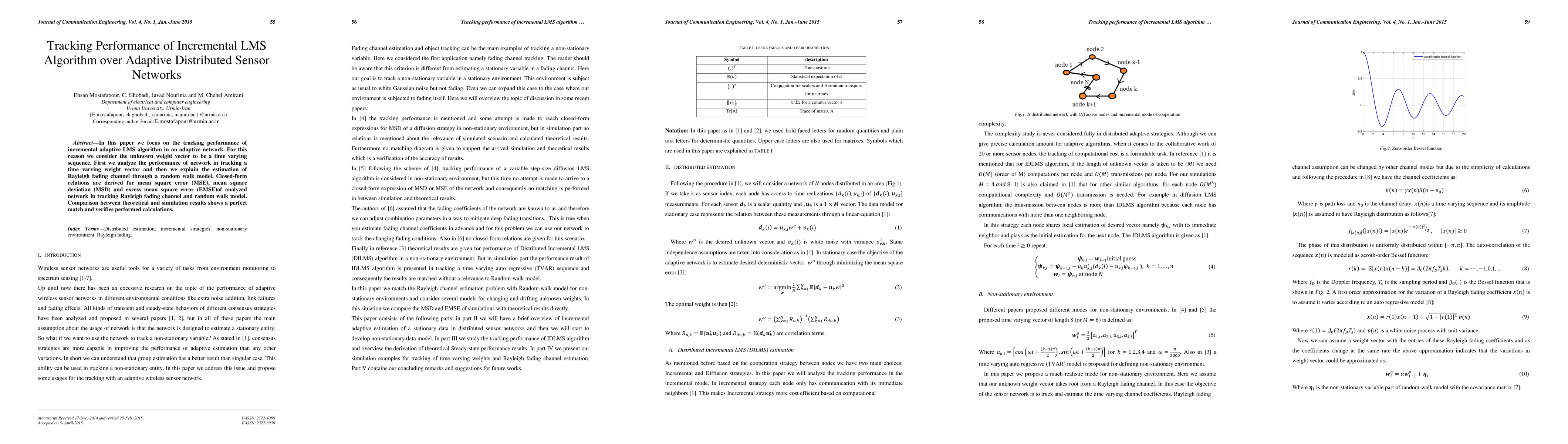 This paper examines the incremental LMS algorithm's performance in adaptive distributed sensor networks, focusing on tracking time-varying weight vectors and estimating Rayleigh fading channels via a random walk model. It derives closed-form relations for MSE, MSD, and EMSE, with theoretical and simulation results showing strong agreement.