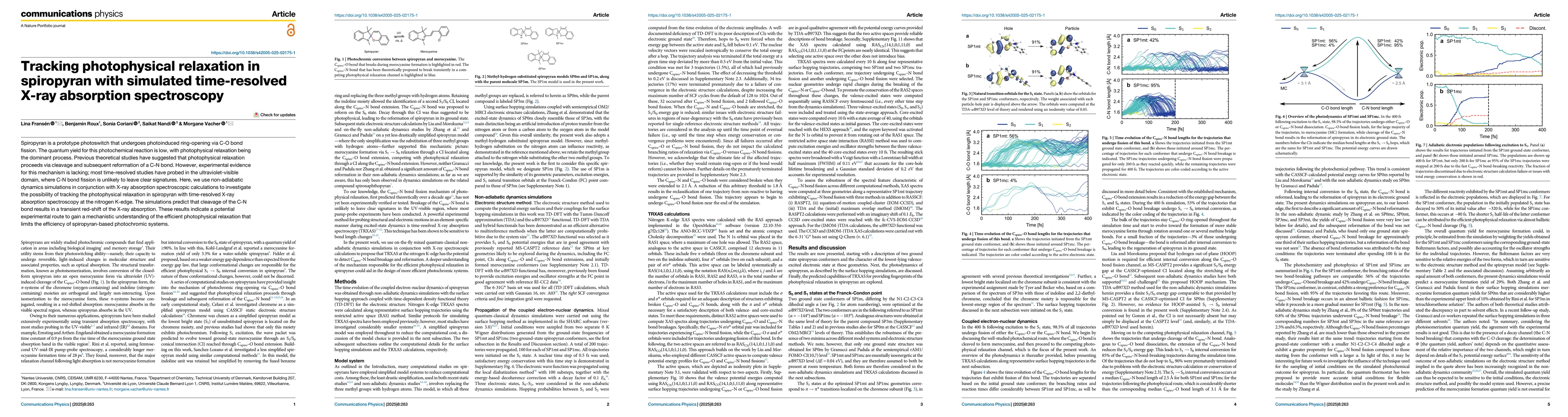 Spiropyran is a prototype photoswitch that undergoes photoinduced ring-opening via C-O bond fission. The quantum yield for this photochemical reaction is low, with photophysical relaxation being the dominant process. Previous theoretical studies have suggested that photophysical relaxation proceeds via cleavage and subsequent reformation of a C-N bond. However, experimental evidence for this mechanism is lacking; most time-resolved studies have probed in the ultraviolet-visible domain, where C-N bond fission is unlikely to leave clear signatures. Here, we use non-adiabatic dynamics simulations in conjunction with X-ray absorption spectroscopic calculations to investigate the possibility of tracking the photophysical relaxation in spiropyran with time-resolved X-ray absorption spectroscopy at the nitrogen K-edge. The simulations predict that cleavage of the C-N bond results in a transient red-shift of the X-ray absorption. These results indicate a potential experimental route to gain a mechanistic understanding of the efficient photophysical relaxation that limits the efficiency of spiropyran-based photochromic systems.