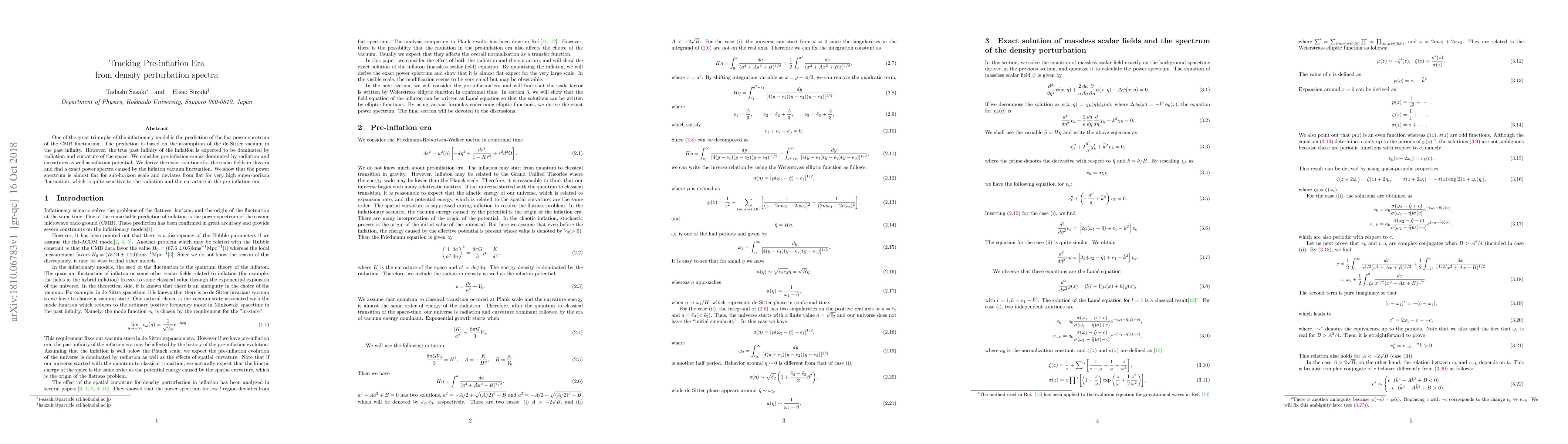 This paper explores the density perturbation spectra to track the pre-inflation era dominated by radiation and curvature, deriving exact solutions for scalar fields and showing that the power spectrum is nearly flat for sub-horizon scales but deviates for super-horizon scales, sensitive to pre-inflation conditions.