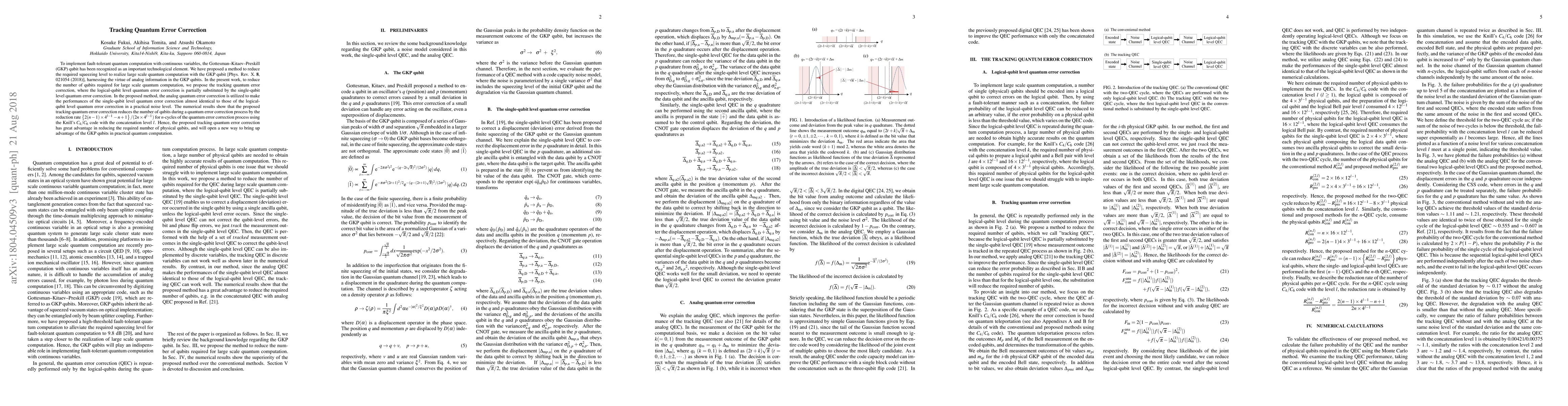 This paper proposes a method called tracking quantum error correction to reduce the number of qubits needed for large scale quantum computation using GKP qubits. By partially substituting logical-qubit level error correction with single-qubit level error correction and utilizing analog quantum error correction, the method achieves performance parity in practical noise levels, significantly reducing the required physical qubits.