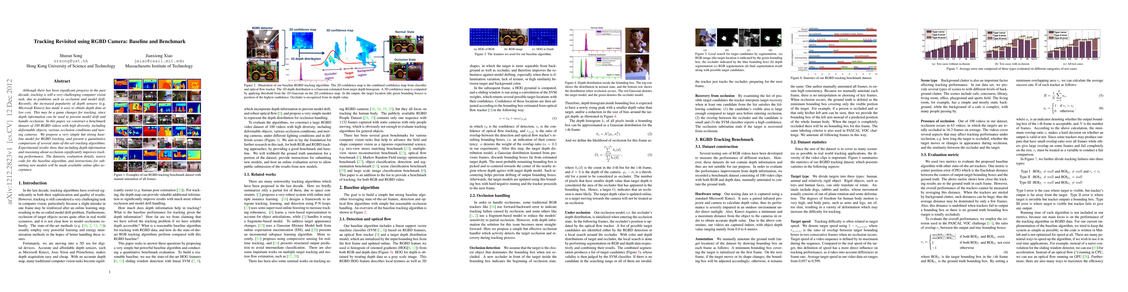 The paper constructs a benchmark dataset of 100 RGBD videos with high diversity, including deformable objects, various occlusion conditions, and moving cameras. A simple yet strong baseline model for RGBD tracking is proposed, and a quantitative comparison of several state-of-the-art tracking algorithms is presented.