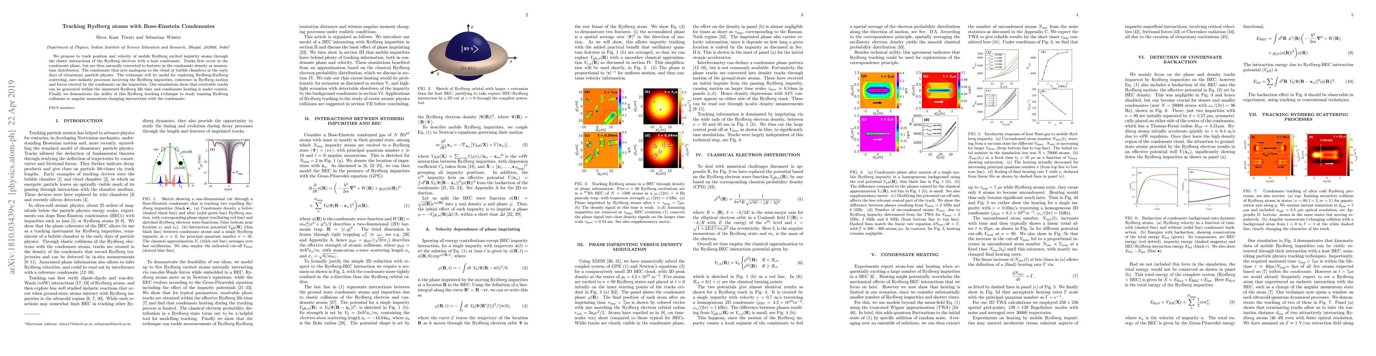 This paper proposes a method to track Rydberg atoms using Bose-Einstein condensates, where elastic interactions create observable tracks in the condensate, analogous to particle tracks in bubble chambers. The technique enables studies of Rydberg-Rydberg scattering, coherence, and forces, with simulations showing feasible track generation within the relevant timescales.